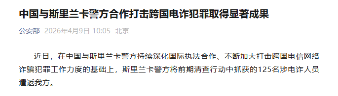 今年以来,针对部分电诈及相关黑灰产人员从其他国家向斯里兰卡转移的突出动向,中国与斯里兰卡警方不断深化务实执法合作,加大打击力度。近期,斯里兰卡警方开展多次清查行动并打掉多个诈骗窝点,抓获一批涉电诈人员。在我驻斯里兰卡使馆的大力支持下,3月29日,公安部组织湖北公安机关民警有序接返相关人员。目前,湖北公安机关正在全力开展案件侦办工作。