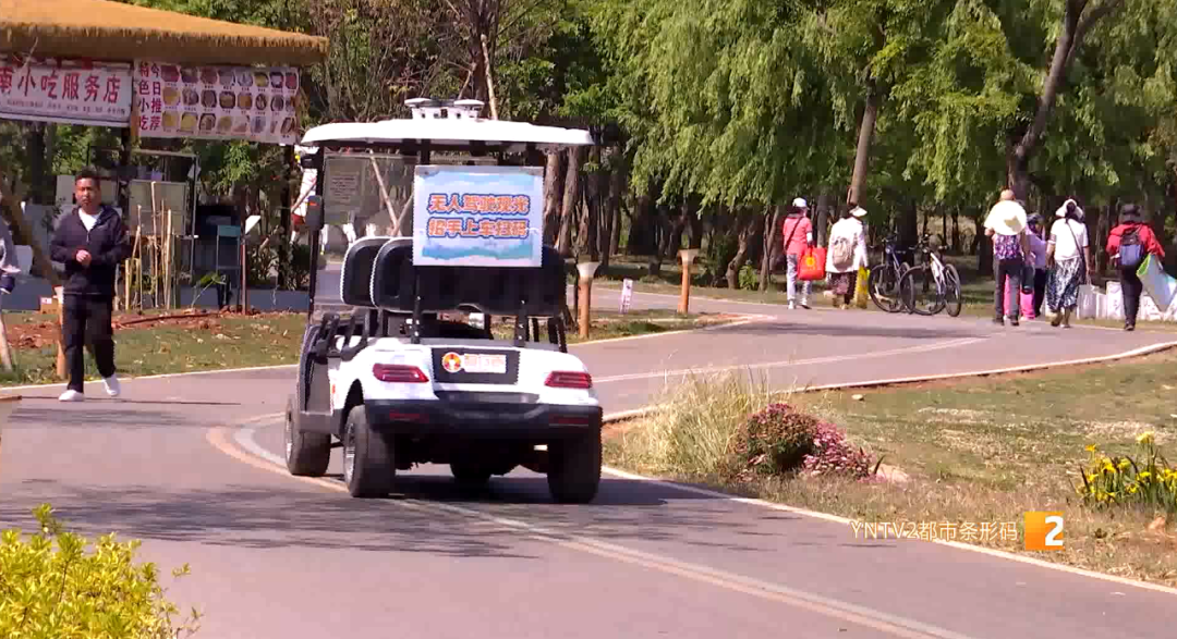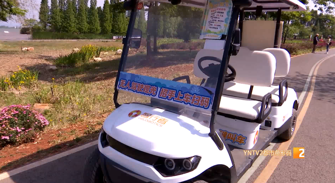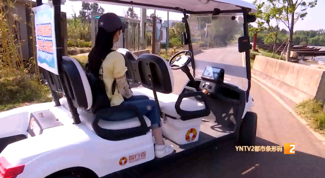 云南渔夫文化旅游开发管理有限公司黄金山:“我们是今年春节以前投入的无人驾驶共享车辆,投入了两辆,因为绿道上游客比较多,我们投入的量不是很大,试行下来的效果还是蛮理想的。”