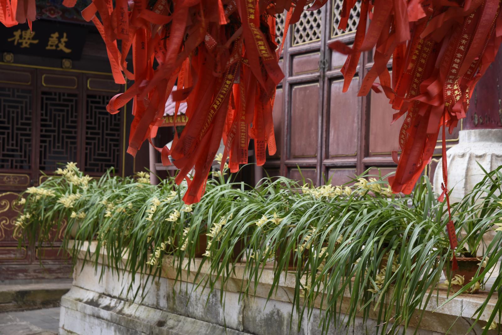 近日,国家AAA级景区通海文庙内,150余盆虎头兰竞相吐蕊,金黄的花箭与红墙黛瓦、飞檐斗拱相映成趣,为这座始建于元代的儒学圣地,增添了几分清雅生机。