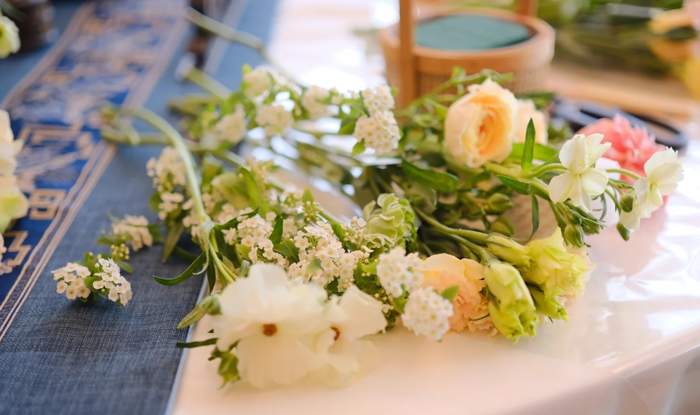 ·“雅韵双绝·茶与花礼”演绎传统美学:在主竹筏旁的专属竹筏上,表演者身着传统服饰,同步呈现茶艺冲泡与插花艺术,指尖流转间,茶香与花香萦绕湖面,与歌曲、舞蹈形成呼应,展现传统生活美学的雅致与细腻。