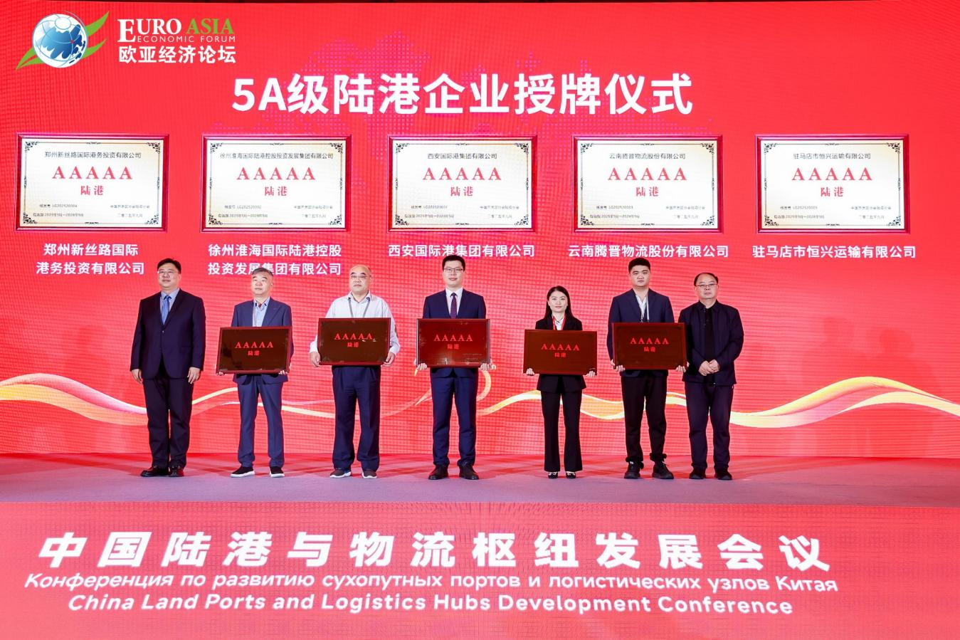 9月23日,2025欧亚经济论坛中国陆港与物流枢纽发展会议在西安举行。腾俊国际陆港作为云南省物流枢纽建设的代表,获授“5A级陆港”荣誉,成为云南首个获此殊荣的陆港。标志着云南在国际陆港建设与多式联运发展中迈入了新阶段。