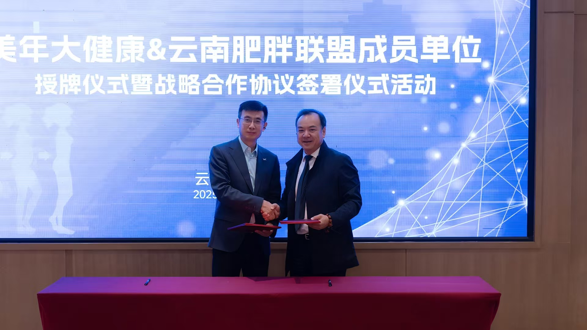 双方代表签署了“美年健康云南省区&云南肥胖联盟”战略合作协议。