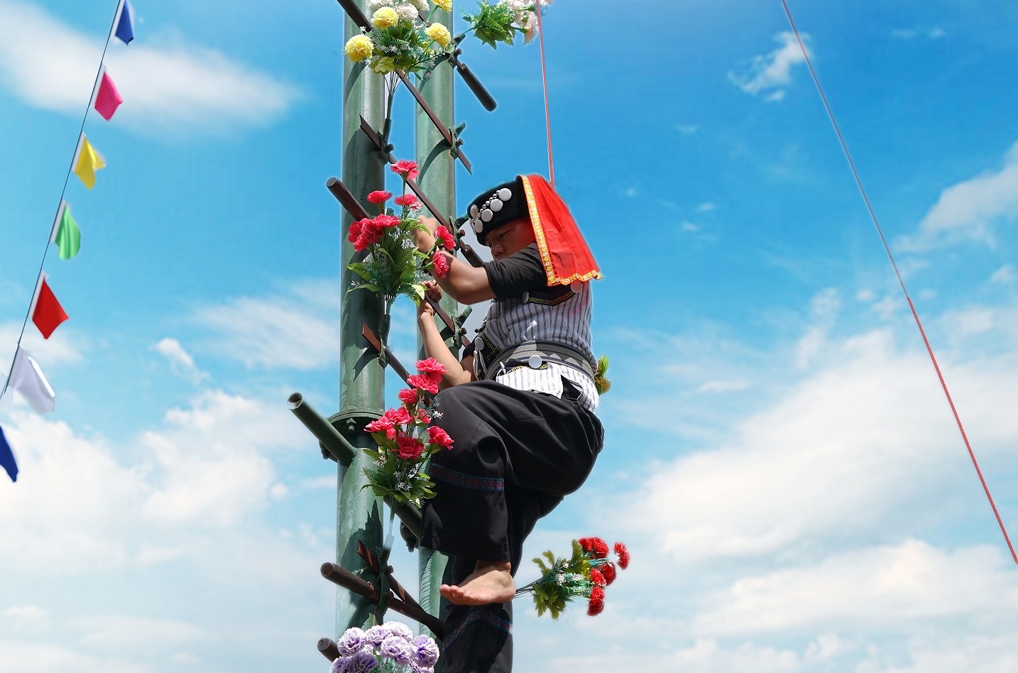 节日当天,热情的傈僳族阿哥阿妹将在东门入口备好拦门酒,为八方游客献上满含真挚情谊的香甜佳酿。从东门前往刀杆广场的路上,身着盛装的各族同胞欢乐巡游,沿途设有趣味民族快闪,邀请大家打卡留念。在刀杆广场上演傈僳族民间绝技“上刀杆”,傈僳勇士会为幸运游客送上祝福,尽显峡谷民族坚韧精神。同期开展的还有源自怒江地区的特色“选秀”,游客们可换上傈僳族的传统服饰拍照体验,让这段民族风情之旅成为珍贵回忆。