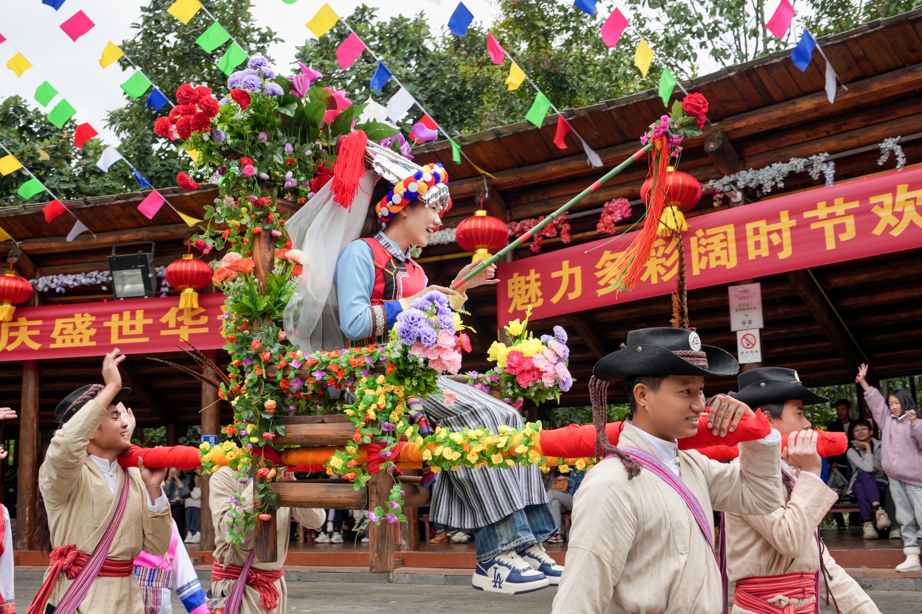 “阔时”是傈僳语的译音,意为“岁首、新年”,承载着傈僳族的文化记忆与美好期盼。云南民族村准备了送福爬刀山、千人连心酒、阿尺木刮、峡谷欢歌等诸多原汁原味的特色民俗,更有靓丽选秀、盛装巡游、特色美食街、流光溢彩夜等沉浸式场景。值得一提的是,今年全新推出与百名NPC互动游戏赢贝币的“赚钱”新玩法,让游客们在感受民族文化魅力的同时,解锁趣味过节新体验。