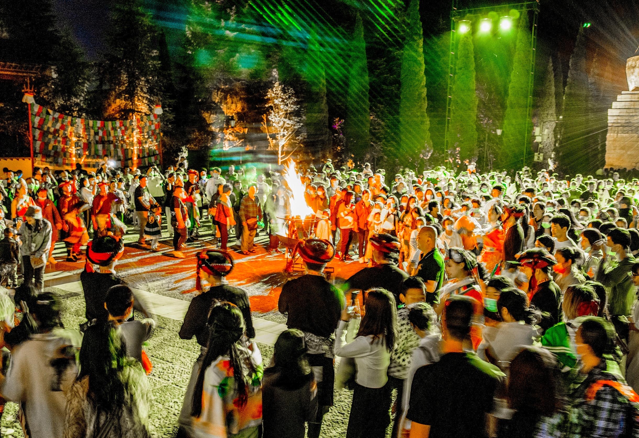 象征各族同胞团结和睦的“千人连心酒”是极具特色的体验环节,游客可在豪迈的峡谷酒阵中共饮佳酿,感受浓浓的民族情谊。国家级非遗传承人李碧清老师将亲临现场,带领多位民间艺人与大家共跳经典的“阿尺木刮”(山羊之舞),另有不同民族乐队、歌手登台献艺,轮番带来视听盛宴。
