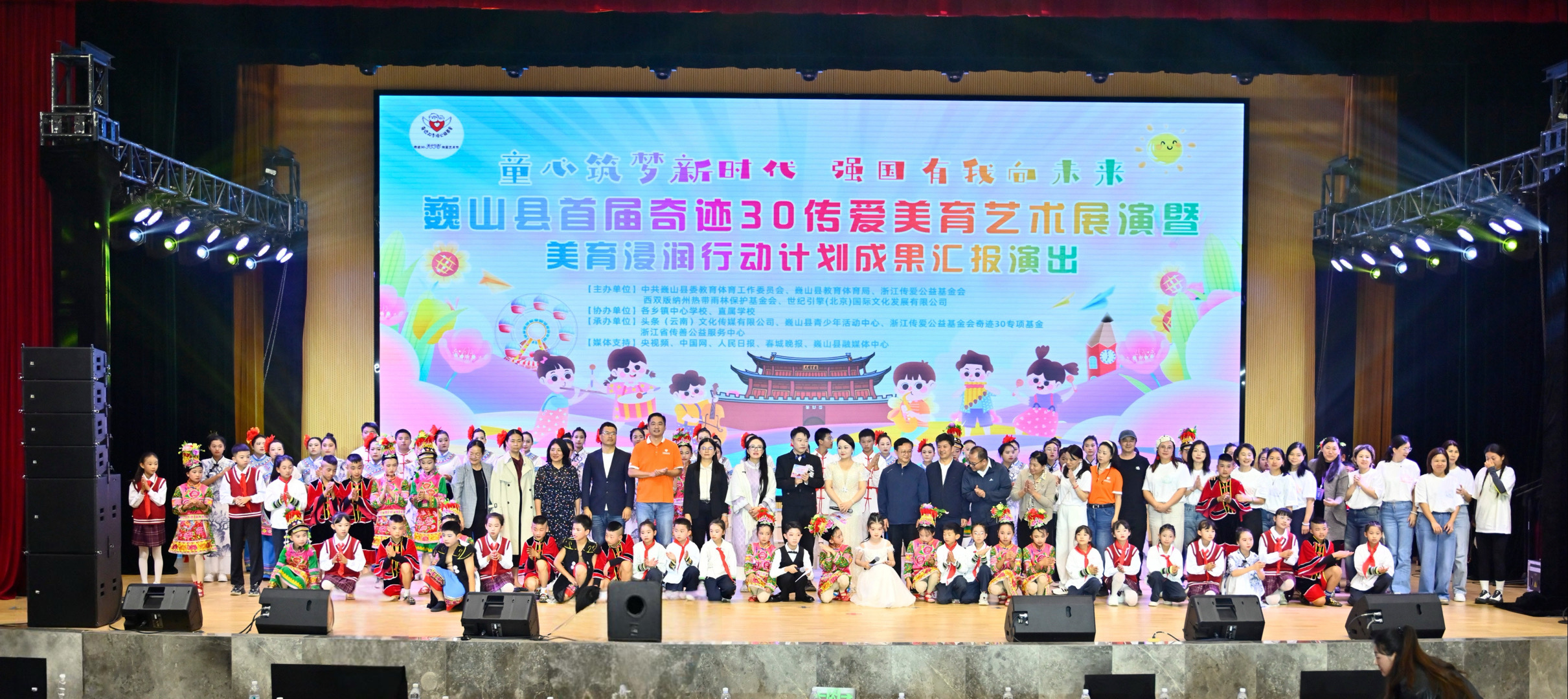9月26日,巍山县首届“奇迹30”美育艺术展演盛典在巍山会堂举行。展演集合文艺演出、爱心捐赠等内容,孩子们以歌传情、以舞筑梦,展现了当地青少年的美育成果。