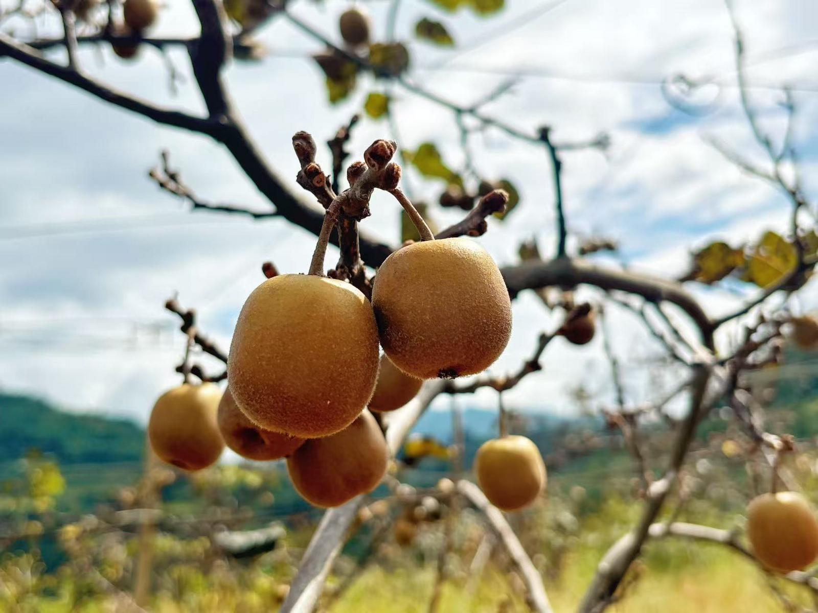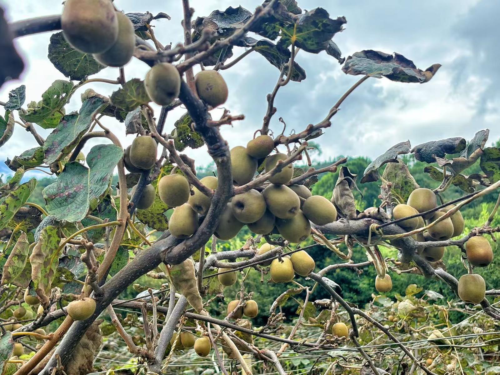 走进果园,支架上的猕猴桃藤蔓纵横交错,一颗颗红心猕猴桃圆润饱满,或两个相拥,或三个成簇,沉甸甸地坠在枝丫间。