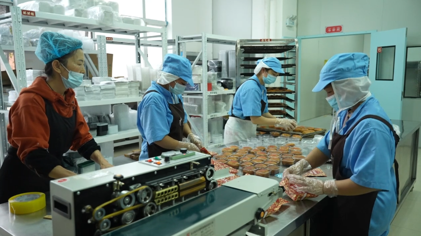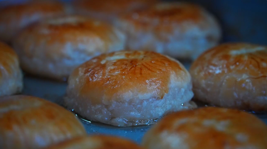 在腊勐镇宏兴糕点店,工人们围着操作台分工协作,揉面、包馅、压模、烘烤,每一步都有条不紊。不一会儿,一盘盘色泽鲜亮的传统月饼与糕点新鲜出炉,热气氤氲中,香甜气息顺着店门飘向街头,引得路过的村民纷纷停下脚步,挑选心仪的点心。这家小店因始终坚守传统工艺、保留老味道,成了当地人心中的“宝藏店铺”。