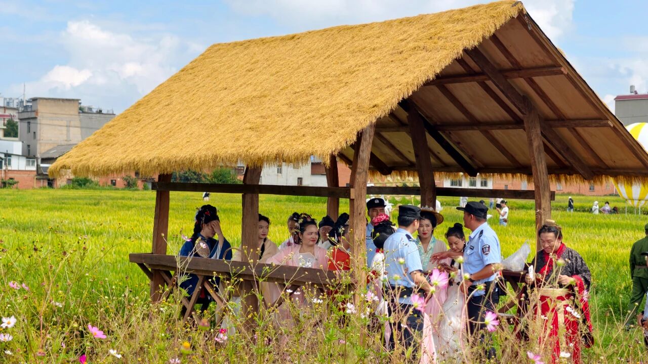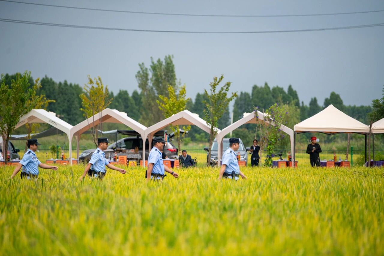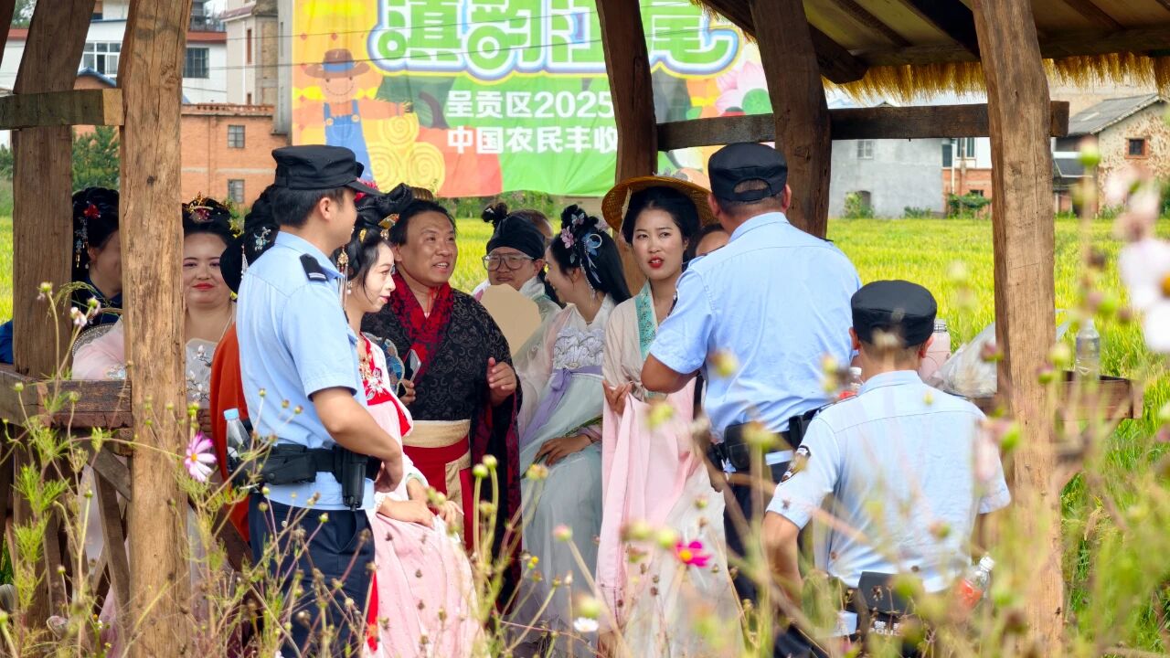在呈贡区2025年“中国农民丰收节”“五彩丰登•滇韵江尾”主题活动现场,呈贡分局民警辅警步履不停,一声声“保管好随身物品”的叮嘱融入田间笑语,他们疏导交通、解答咨询,在稻浪与人流中当好“平安守望者”。