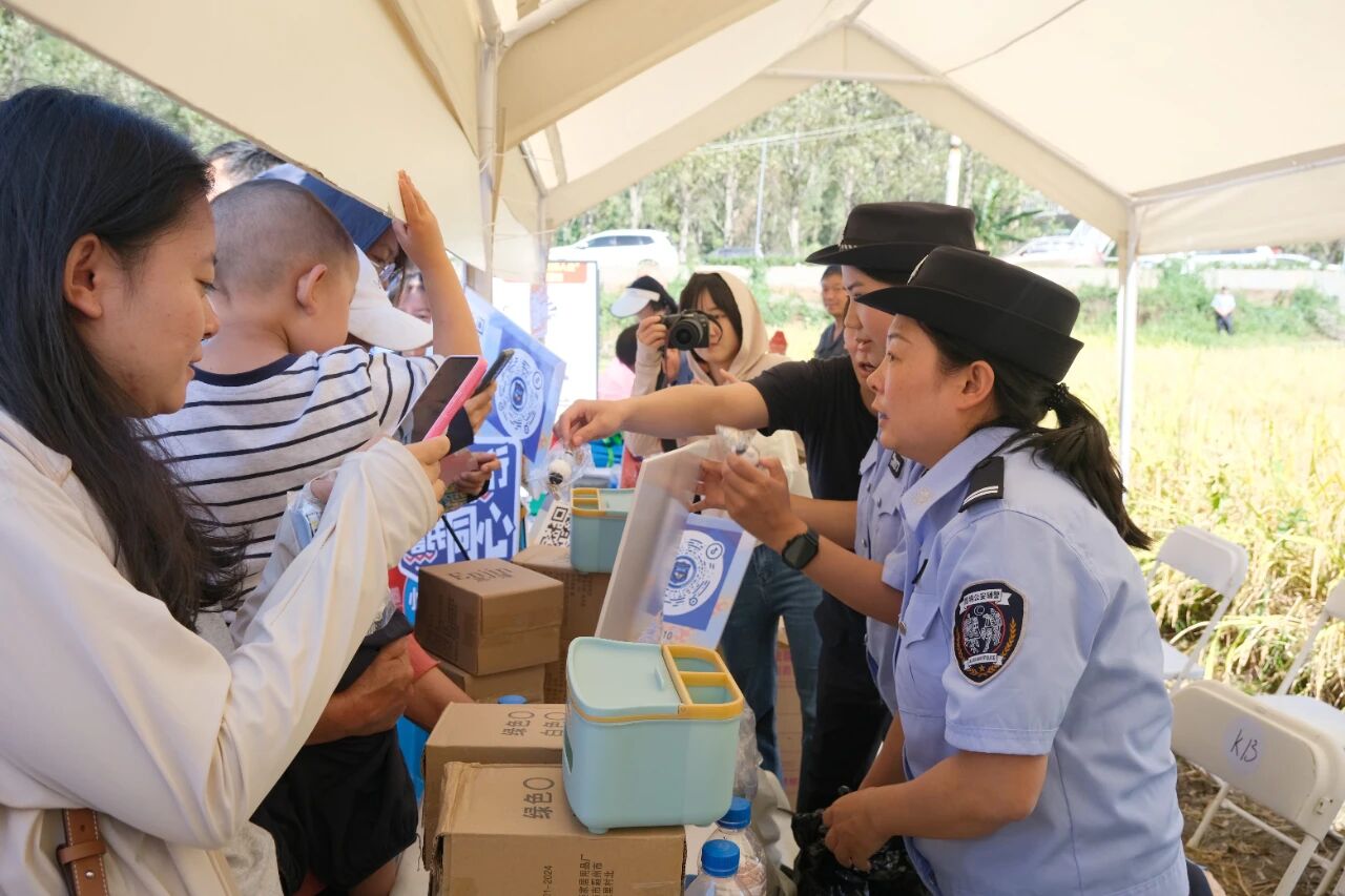 借助丰收节人员聚集的契机,民警辅警将普法宣传融入民俗体验,当起“普法快递员”。他们结合真实案例向群众讲解防骗知识,将反诈的种子“种”进心田,全力守护群众的“钱袋子”。