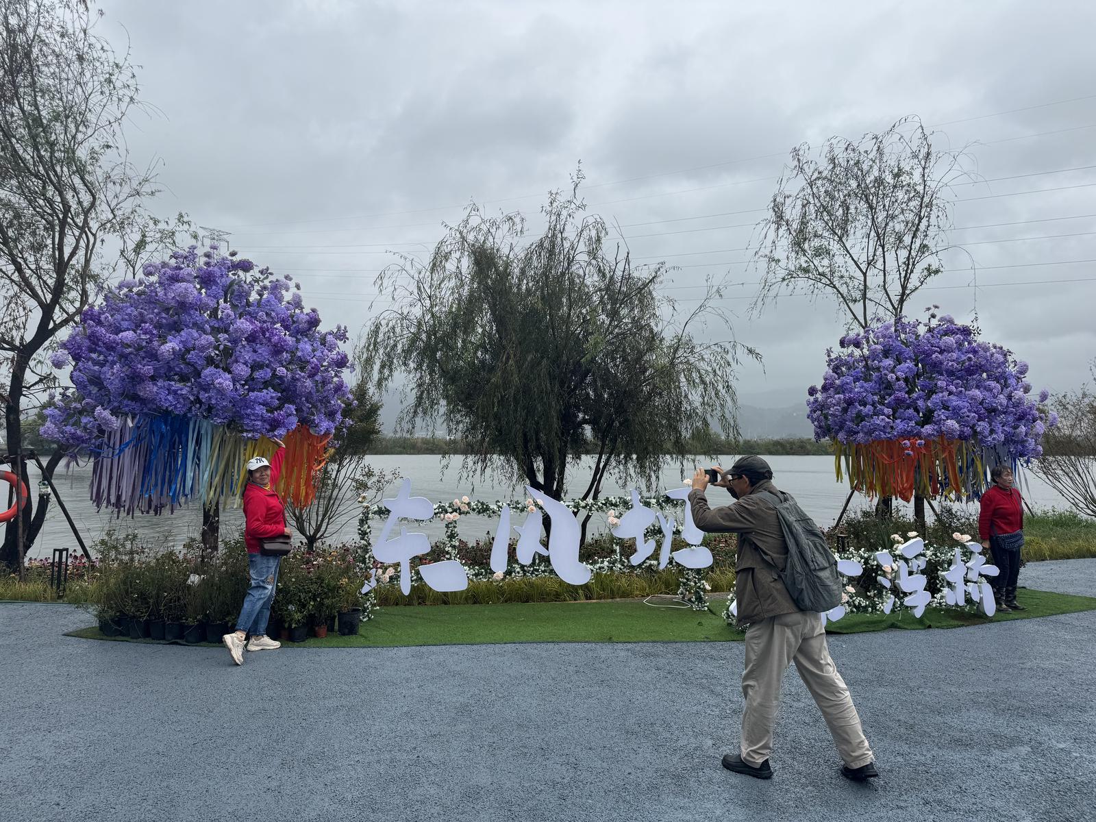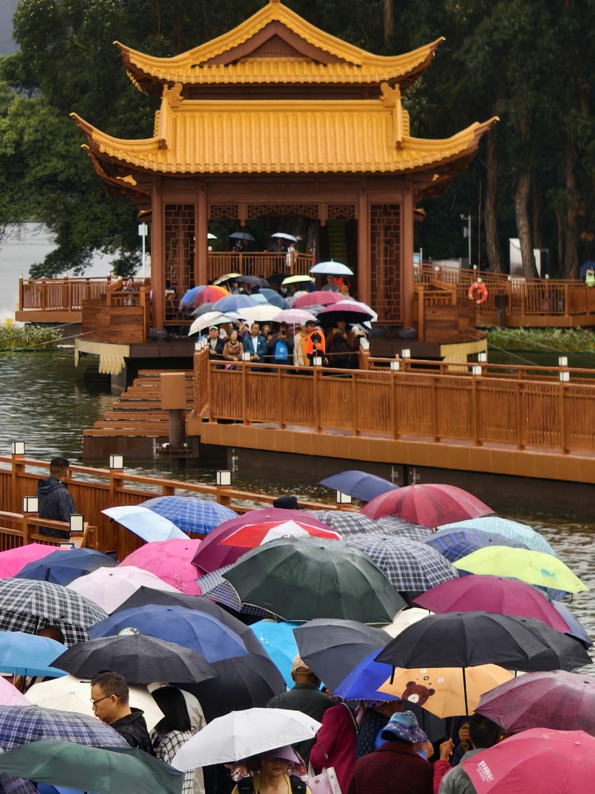 当天上午,尽管天空飘着雨,仍挡不住市民前来打卡的热情。