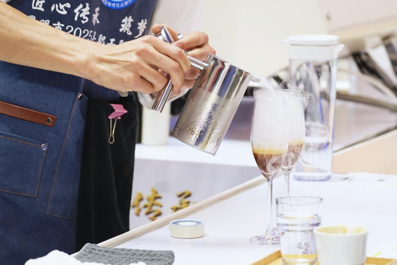 竞赛聚焦咖啡行业核心技能,设置咖啡生豆拼配与烘焙赛、浓缩咖啡饮品制作赛两大赛程,吸引全市多名优秀咖啡师同台竞技。比赛现场,浓郁的咖啡香气弥漫全场,参赛选手尽显专业素养与工匠精神。在生豆拼配与烘焙环节,选手们精准把控咖啡豆特性,结合市场需求与风味创新制定拼配方案,通过严控烘焙温湿度,赋予咖啡豆独特风味;浓缩咖啡饮品制作环节中,选手们娴熟运用萃取、拉花技艺,兼顾口感与创意,呈现出兼具观赏性与品质感的作品。