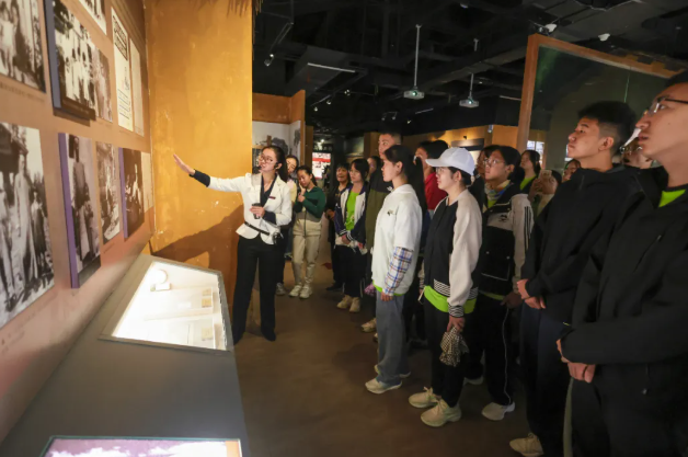 仪式现场,邢晋向研学团队授营旗,象征着研学使命的正式传递,何茜华宣布“一堂行走的思政课”——滇越铁路公益研学活动正式开营。随后,学员们集体参观西南联大博物馆,在“刚毅坚卓”的精神熏陶中,开启了本次研学的第一堂“思政课”。