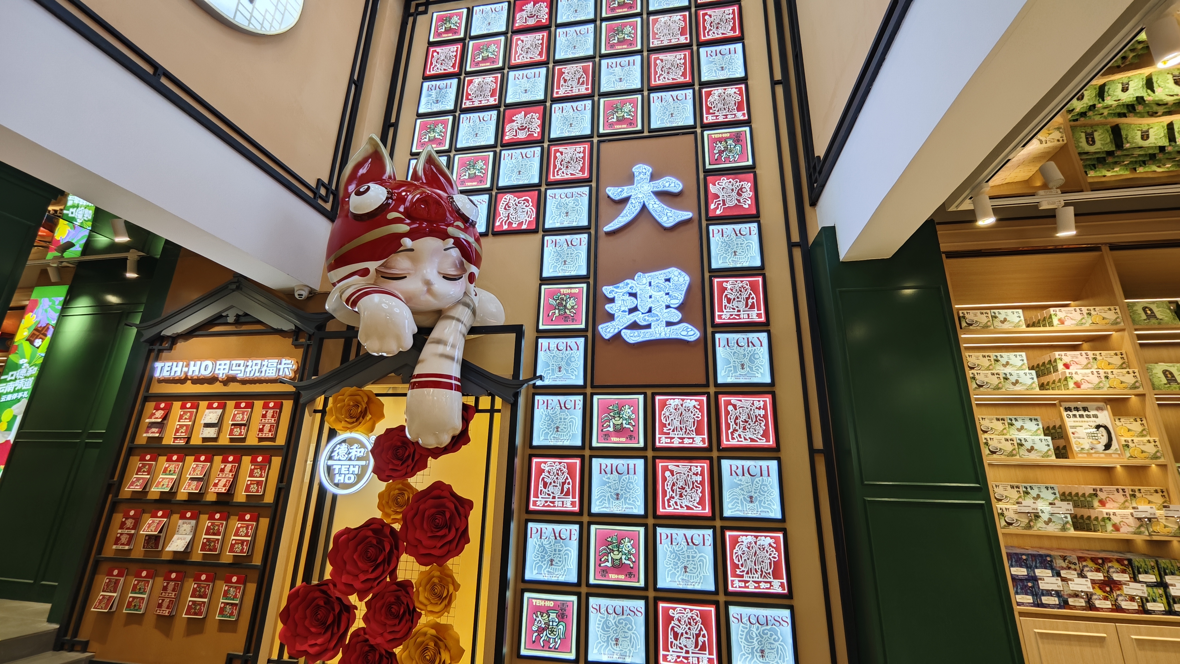 选择大理作为首店落地,德和有着深层次的考量。作为年客流量数千万的国际旅游目的地,大理成为老字号创新转型的理想试验场。店铺设计融入大理建筑特色,卧在屋脊的瓦猫既传统又新潮,让游客在打卡拍照时自然接触云南非遗。