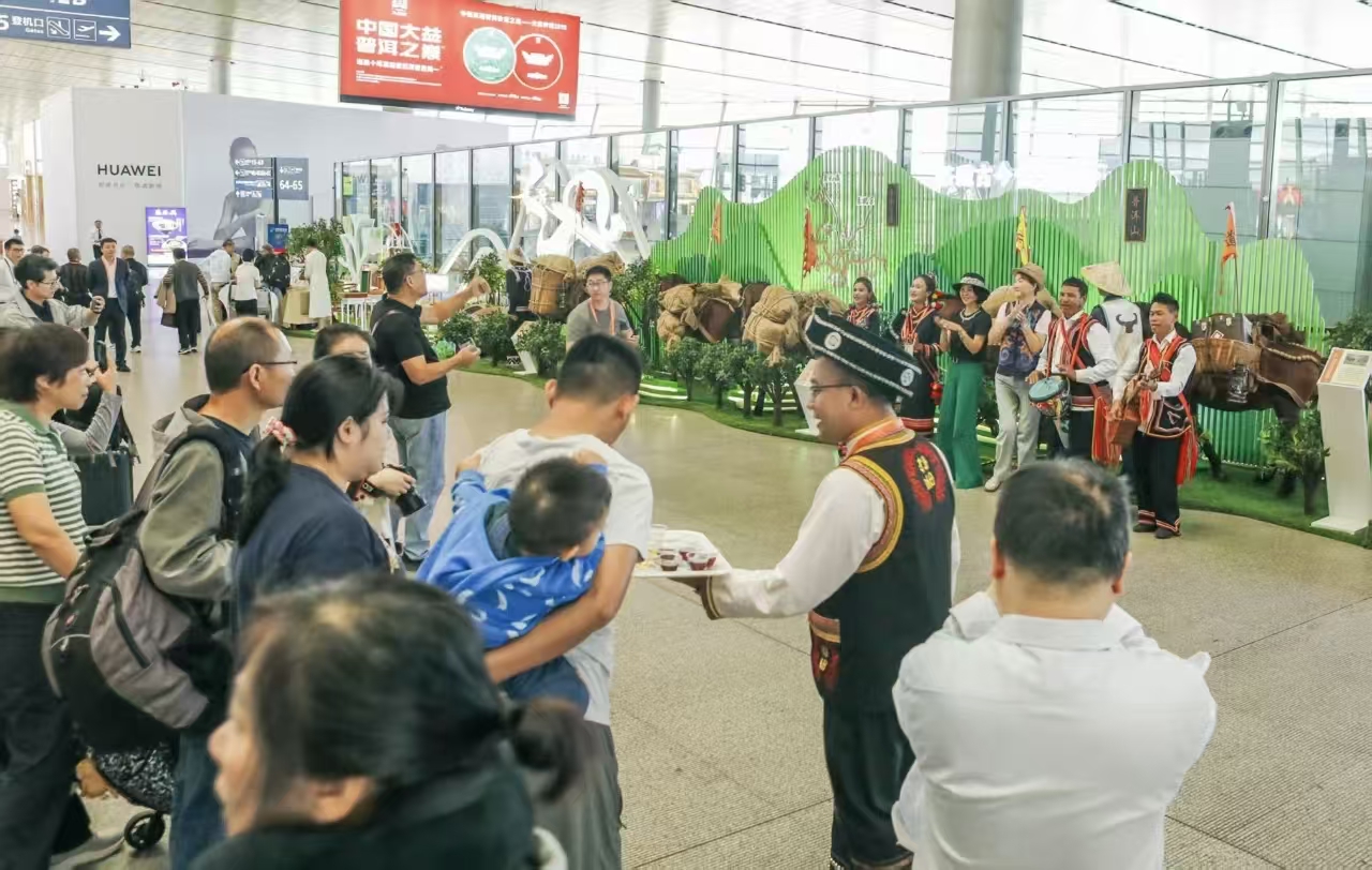 9月28日,昆明长水国际机场“绝版普洱·香遇世界”普洱茶主题宣传推介活动收官。同期,由机场携手普洱市茶叶和咖啡产业发展中心、云南空港商贸有限公司共同打造的“茶马古道”服务项目正式启动。作为2025年“民航服务提振消费年”的重点实践,这一项目根植于机场“八香”特色服务品牌,不仅以茶阐释“有一种叫云南的生活”的深厚内涵,更凭借“航空+文旅+消费”的创新融合,为提振航空消费注入新动力,使航站楼成为展示云南生态之美、文化之韵的亮丽窗口。