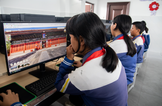 在充满科技感的教室,不仅搭载了先进的智能教学设备,还提供了丰富的教学形式和内容,让孩子通过电脑接触更丰富的知识、更好用的教学工具,将为他腊小学的336名学生和18名教师打开一扇通向更广阔世界的数字之窗。当天,崭新的电脑教室迎来了第一批体验者。孩子们在老师的指导下,第一次通过智慧黑板接触到了AI互动教学,眼神中充满了好奇与兴奋。学生们开心地说:“这是我第一次在学校用电脑上语文课,感觉好新奇啊!老师讲课,我们还可以自己在电脑上看、逛故宫,好像真的去了宫里一样,好玩又有意思。”。他腊小学六年级教师苏老师表示:“今天对我来说也是第一次在课堂上用智慧黑板配合电脑教学,很有体验感。和传统教学课堂相比,讲课更直观了,孩子们既学到了课本上的知识,又通过电脑看到真实的文化场景,这种方式更新了教学方法,也提升了教学质量。”