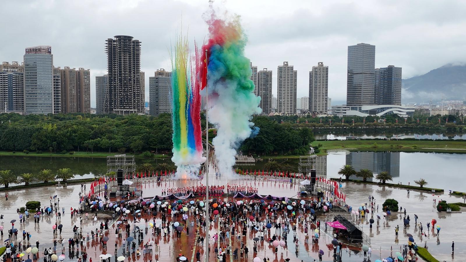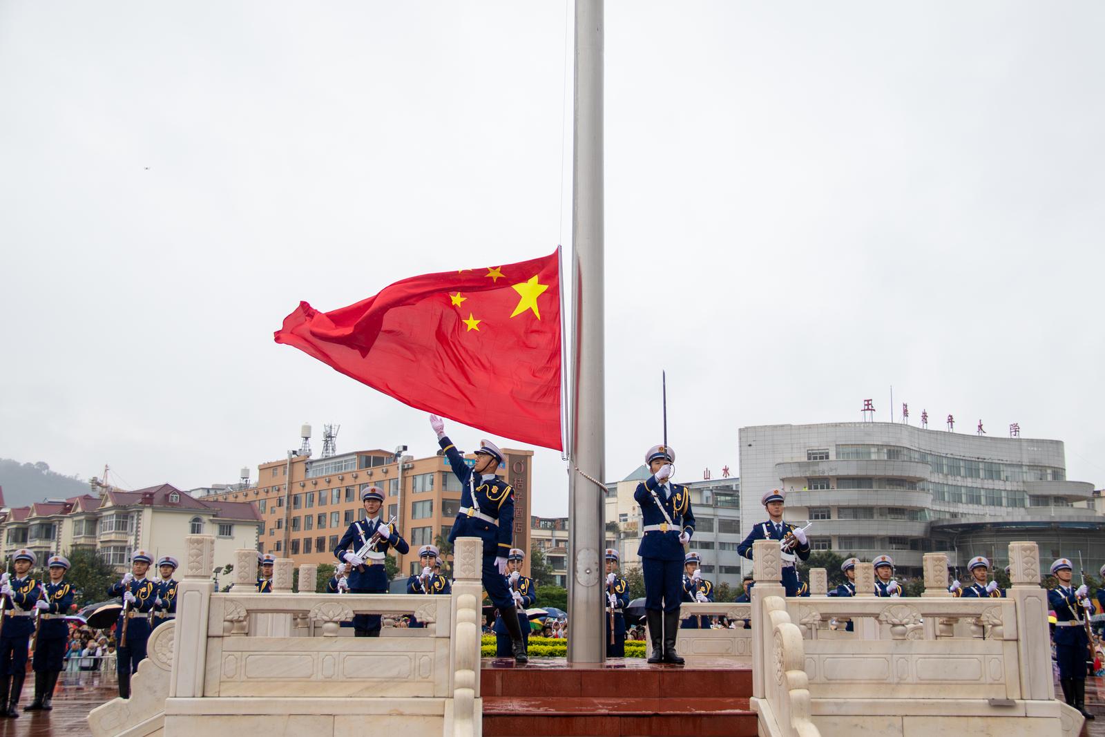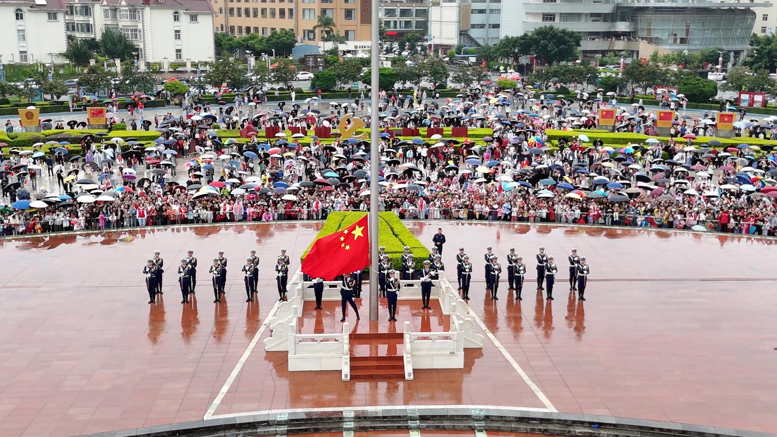 10月1日上午,云南省玉溪市在聂耳音乐广场庄严举行“同升国旗·同唱国歌”活动,市民游客冒雨从四面八方汇聚于此,在秋雨的洗礼中共同迎接中华人民共和国76周年华诞,以赤诚之心表达对祖国的深切热爱与祝福。