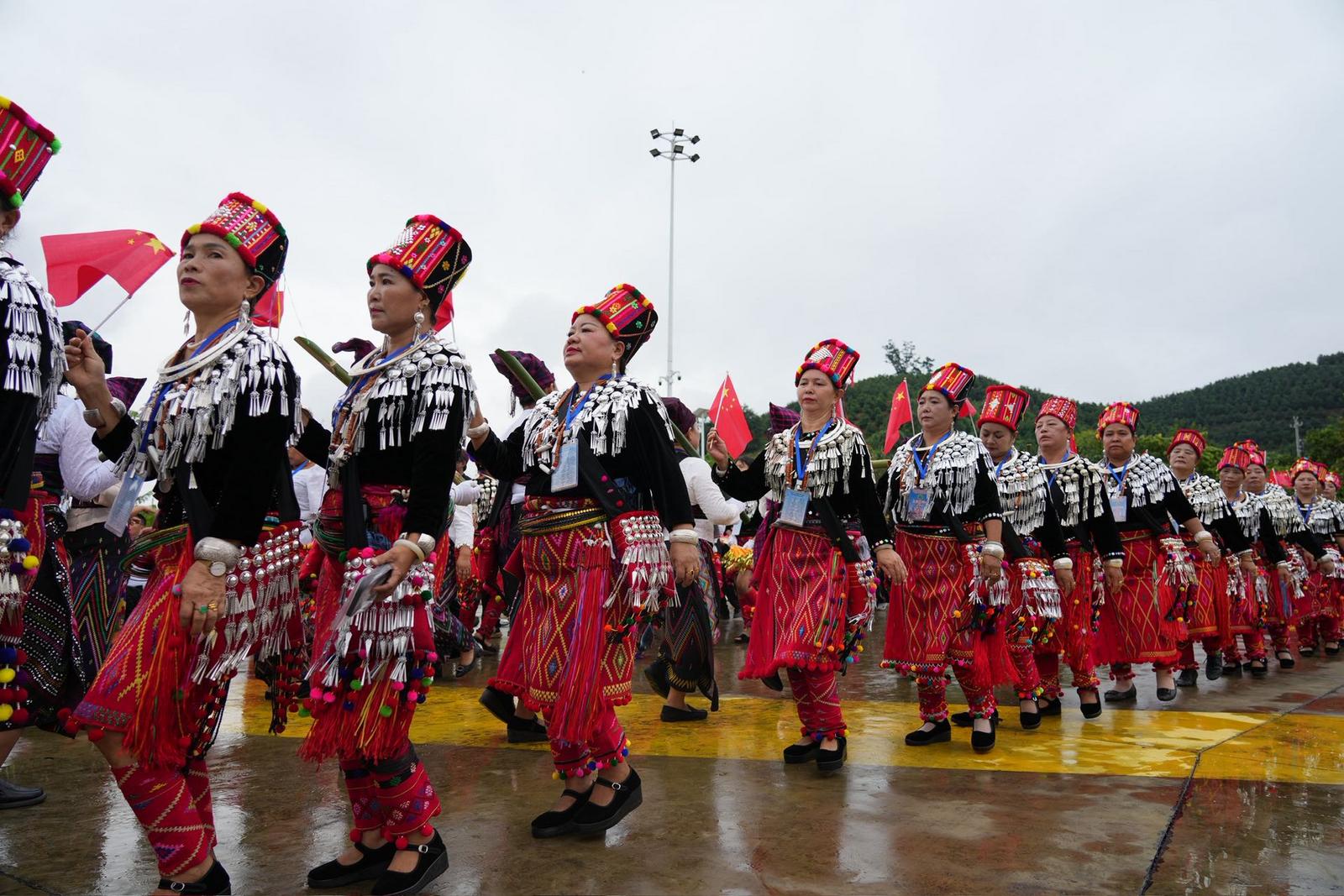 舞场上,雄浑的呐喊声响彻云霄,传递着边疆儿女对伟大祖国的深情礼赞。身着节日盛装的景颇、汉、傣、傈僳、阿昌、德昂等各族儿女与八方宾客,汇聚成一道流动的彩虹。清脆的银饰碰撞声、欢快的笑声与激昂的乐器声交织共鸣,汇聚成一曲动人心弦的民族团结乐章。