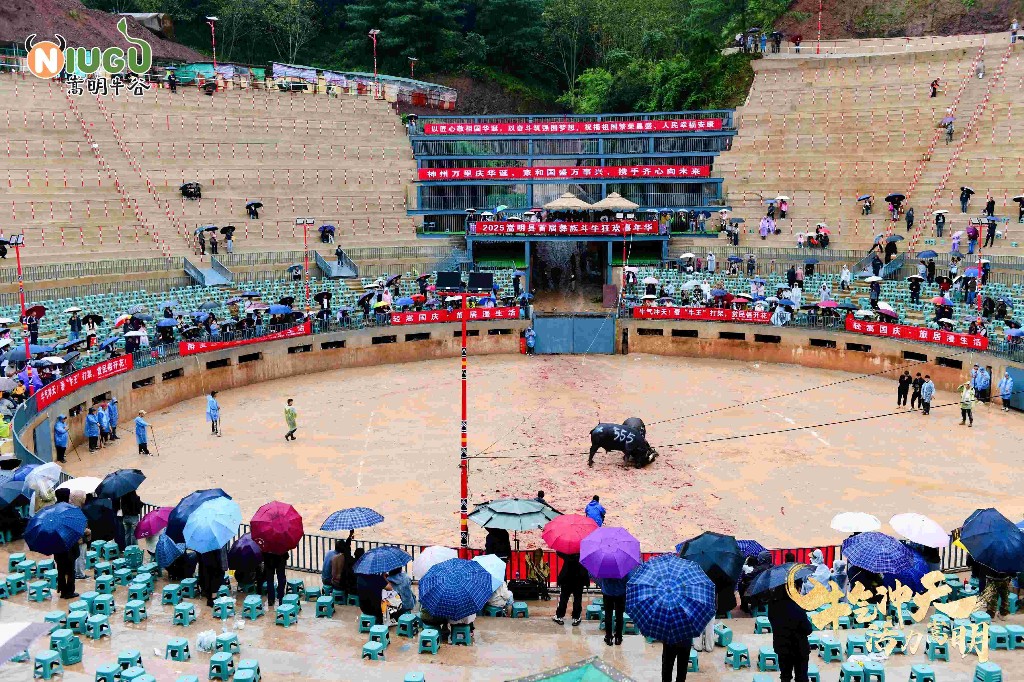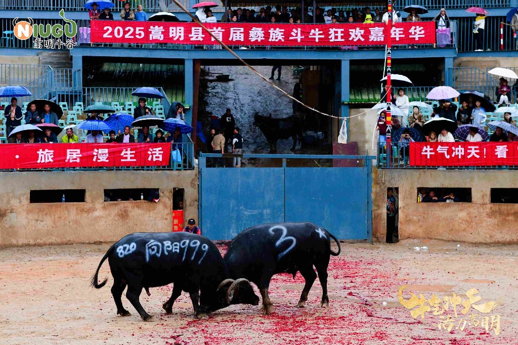 随着五彩斑斓的焰火腾空而起,2025嵩明县首届彝族斗牛狂欢嘉年华正式开幕。来自各地的优秀斗牛同台竞技,为观众带来了一场场惊心动魄的力量对决。活动设置了不同级别和组别的比赛,让每一场对决都充满了悬念和激情。斗牛场上,斗牛们勇猛无畏,它们相互冲撞、角力,观众的加油声和欢呼声此起彼伏,将现场气氛一次次推向高潮。