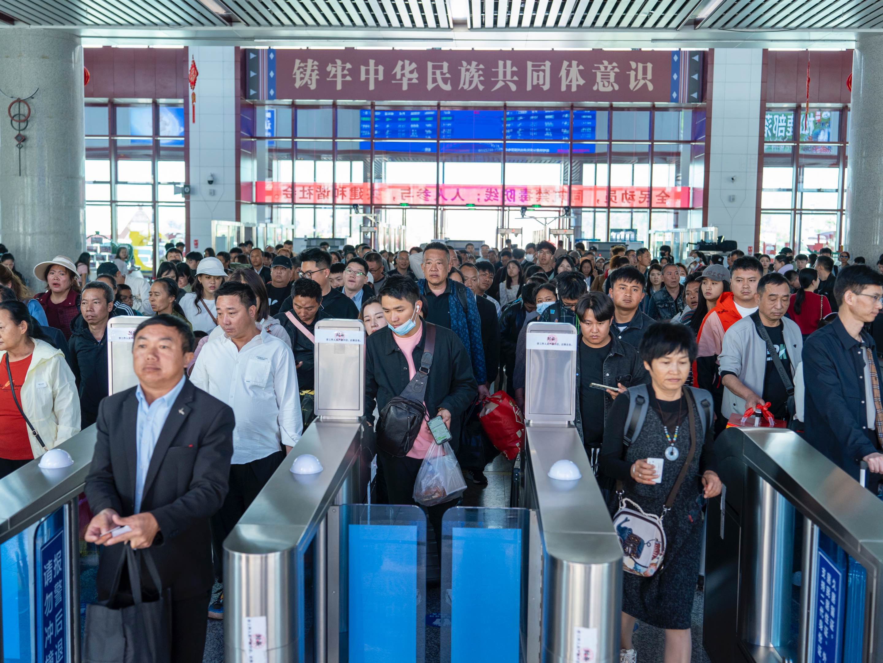 10月2日,开屏新闻记者从中国铁路昆明局集团有限公司(以下简称“国铁昆明局”)获悉,10月1日(国庆假期首日),云南铁路客流增幅明显,国铁昆明局单日发送旅客超60.6万人次,同比增长13.8%,创历史新高。其中,昆明站和昆明南站共计发送旅客超30万人次,同比增长19.2%。