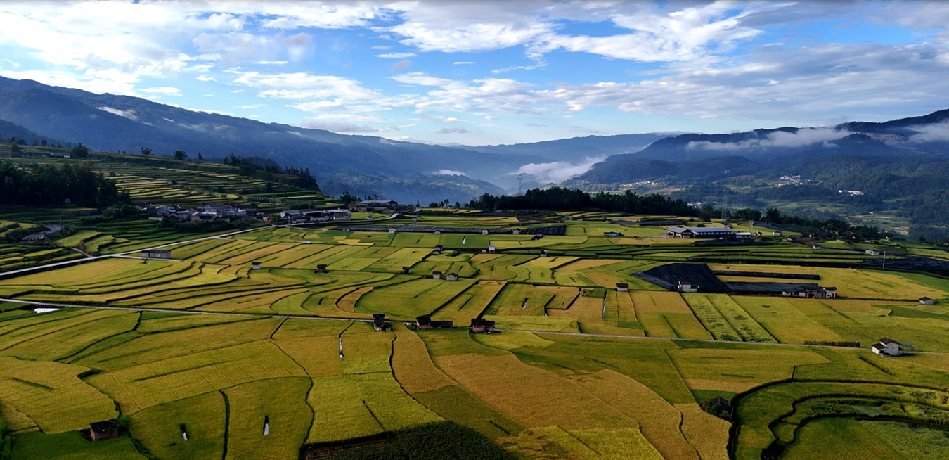 雨雾中的龙江乡,别有一番诗意。万亩梯田裹着雨珠,在秋日里泛着温润的光,与云雾缭绕的青山、雨雾朦胧的龙川江相映成趣,丰收的气息在雨水中愈发浓郁。