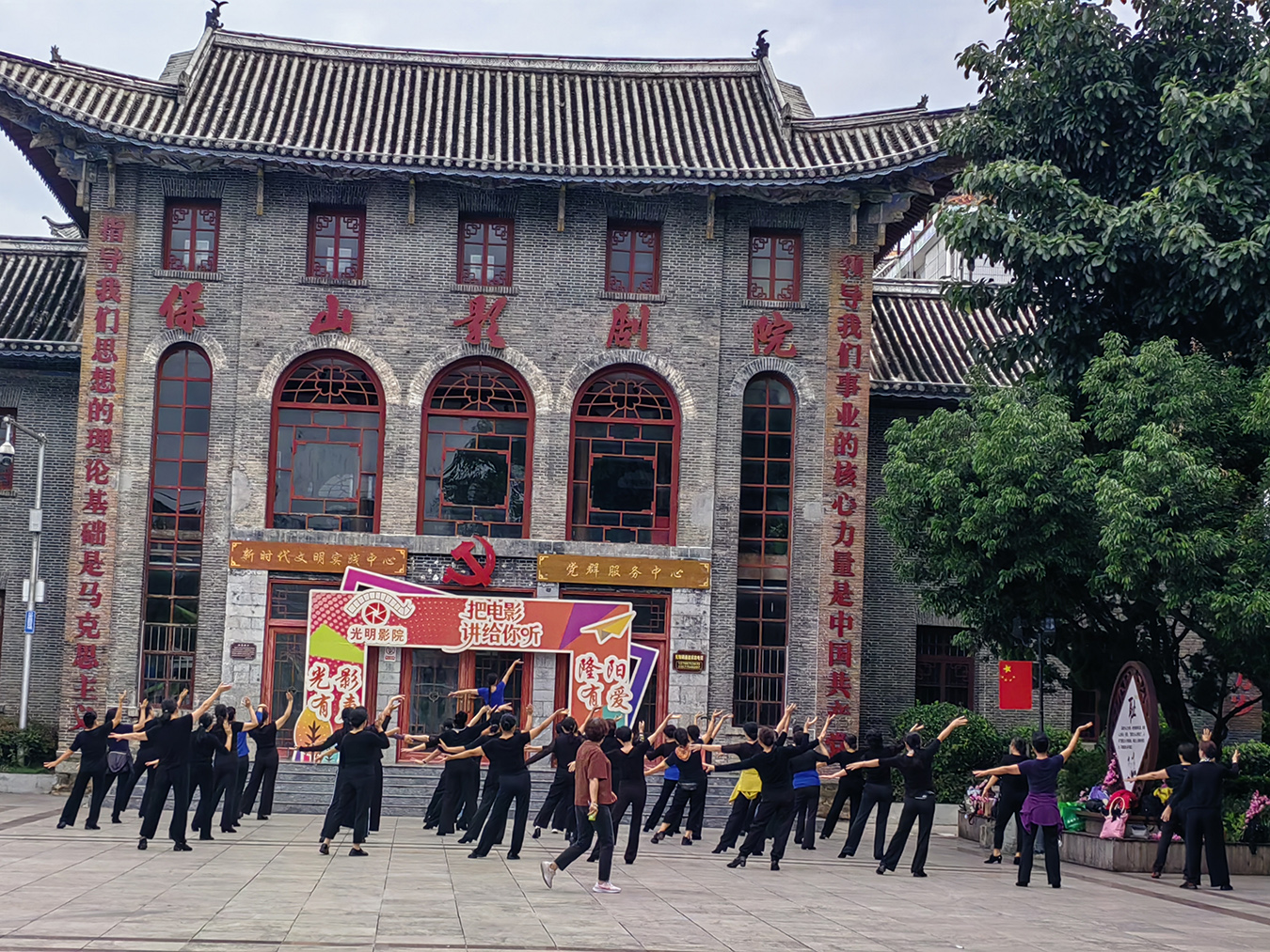 影剧院外的广场上,热闹依旧。跳广场舞的阿姨随着音乐舞动,孩子们追逐嬉戏,老人们坐在老树下聊天,偶尔说起当年看电影的往事。老电影博物馆的门常开着,有人来寻童年记忆,有人来了解保山电影史,那些老设备、旧票根,成了连接过去与现在的纽带。