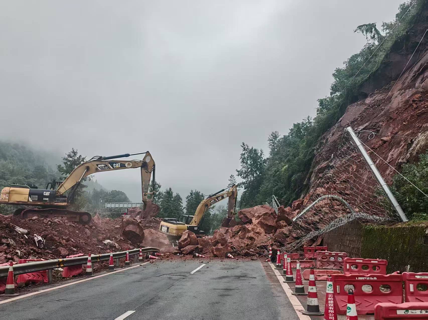 10月1日13时10分,G85银昆高速水麻段昭通往水富方向普洱至庙口区间突发山体崩塌,约500余方崩塌体导致下行交通中断(未造成人员伤亡及车辆受损)。险情发生后,云南交投集团及时调度,所属管养单位立即启动应急预案,联合交警、综合执法等部门联勤联动,迅速调配3台挖机、1台装载机、5辆货车及38名应急抢险人员赶赴现场。经过全力以赴的紧张作业,16时45分超车道率先清理完毕、滞留车辆顺利放行,21时40分崩塌体全部清除,道路恢复正常通行。