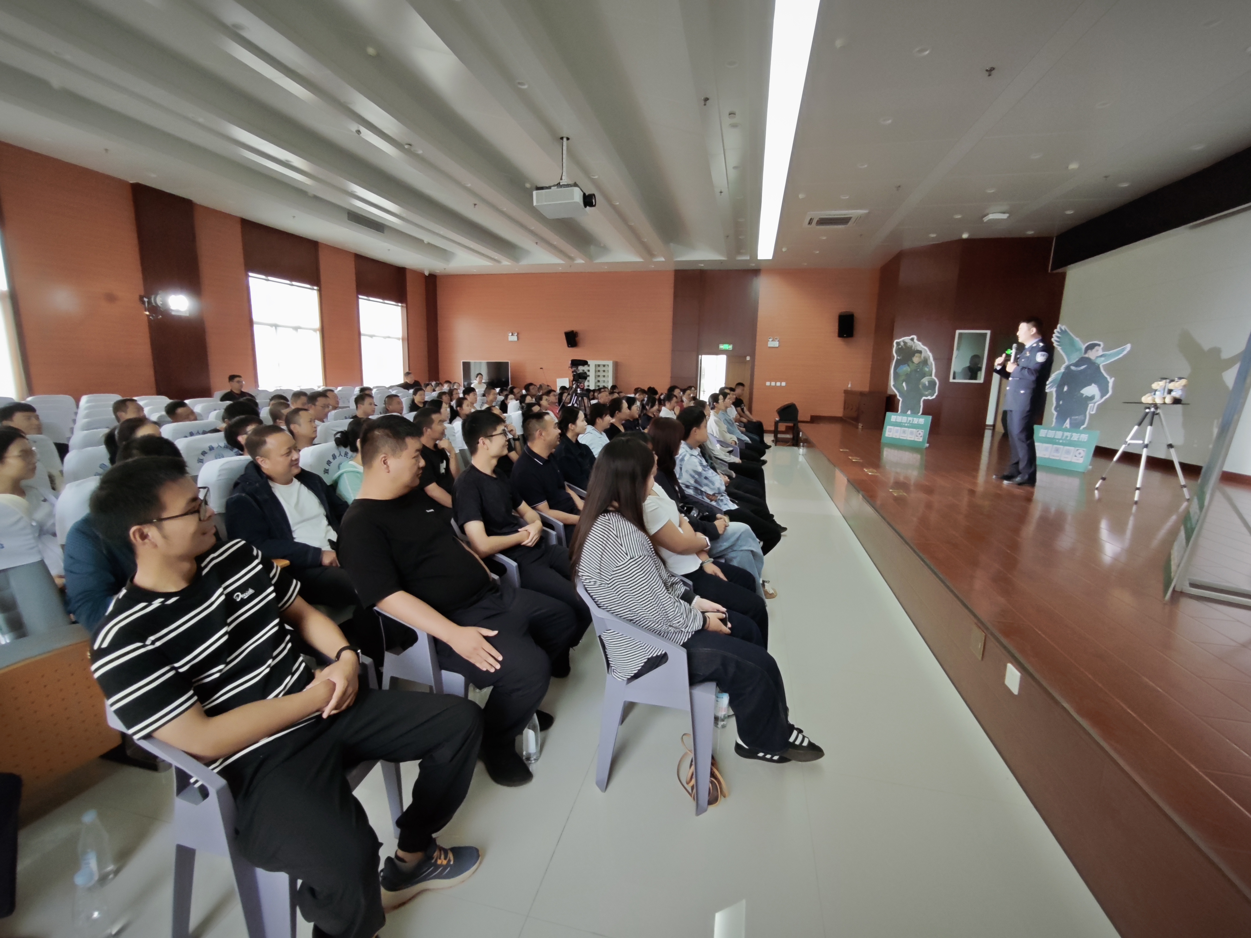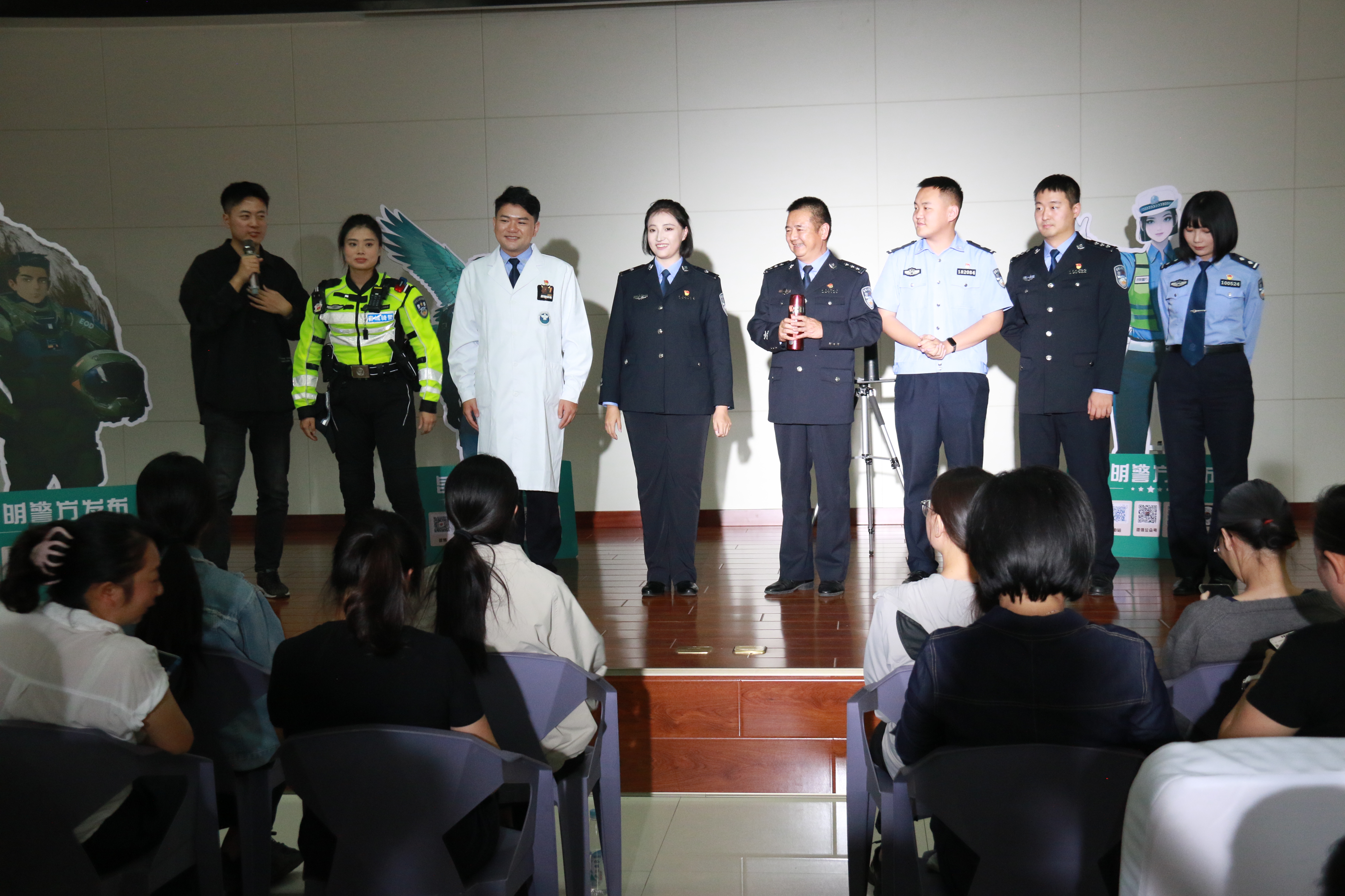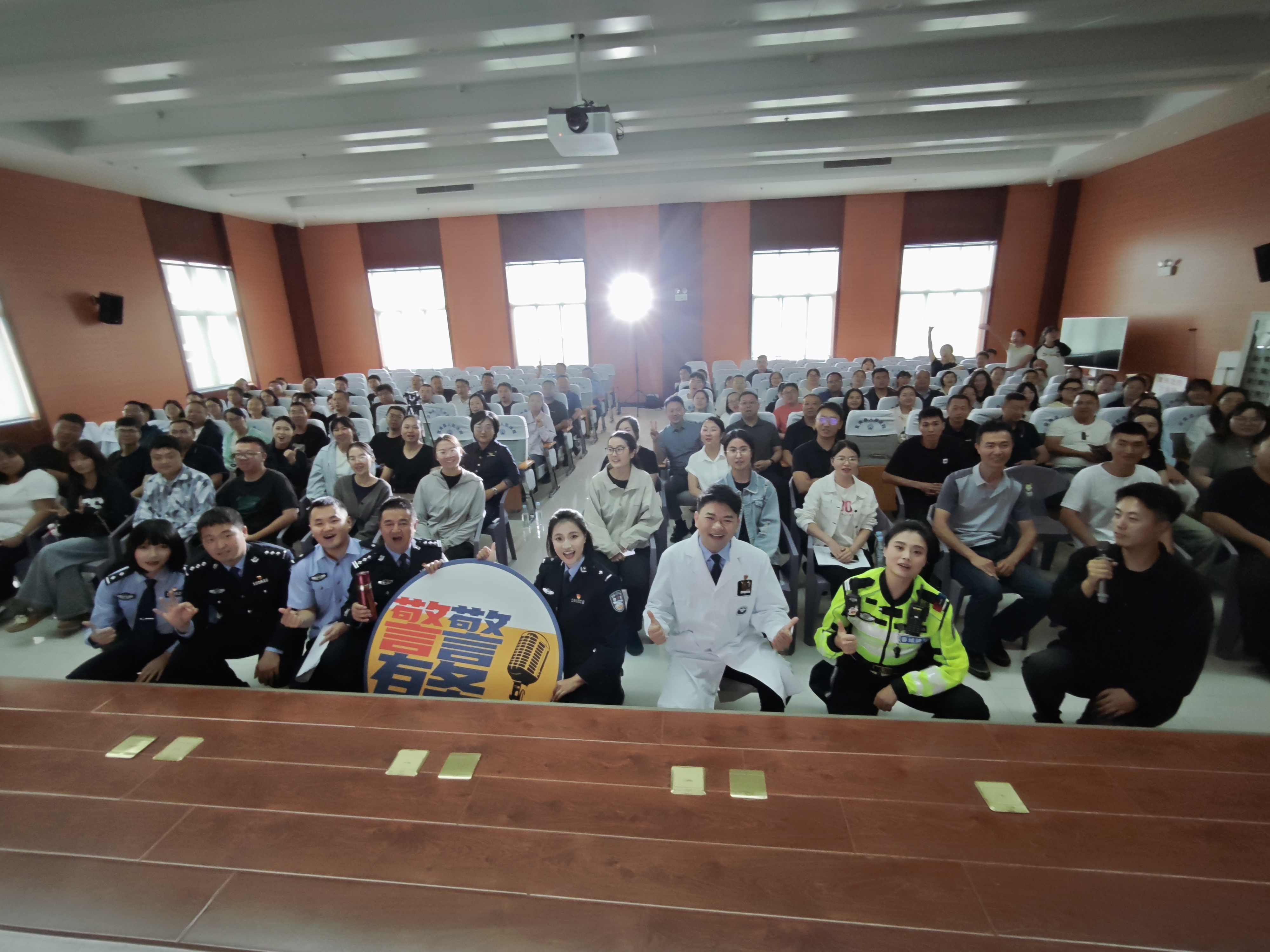 率先上台的王凯,一开口就戳中了大家的笑点:“第一次出警拉响警笛冲出去,就被队长骂‘扰民’,原来正义的声音也要控制音量。”话音刚落,宜良县局督查审计大队的辅警小李已笑出了声。作为王凯的“老粉丝”,她早就在网上刷过其演出片段,如今亲眼见偶像站在眼前,把“被困落锁警车错过抓捕”的糗事讲得妙趣横生,小李忍不住前仰后合。当王凯说到“说好把后背交给战友,结果我在车里比嫌疑人还急”时,台下的刑侦民警们心照不宣地交换了眼神,那是他们都懂的“手忙脚乱”,是藏在辛苦里的小默契。