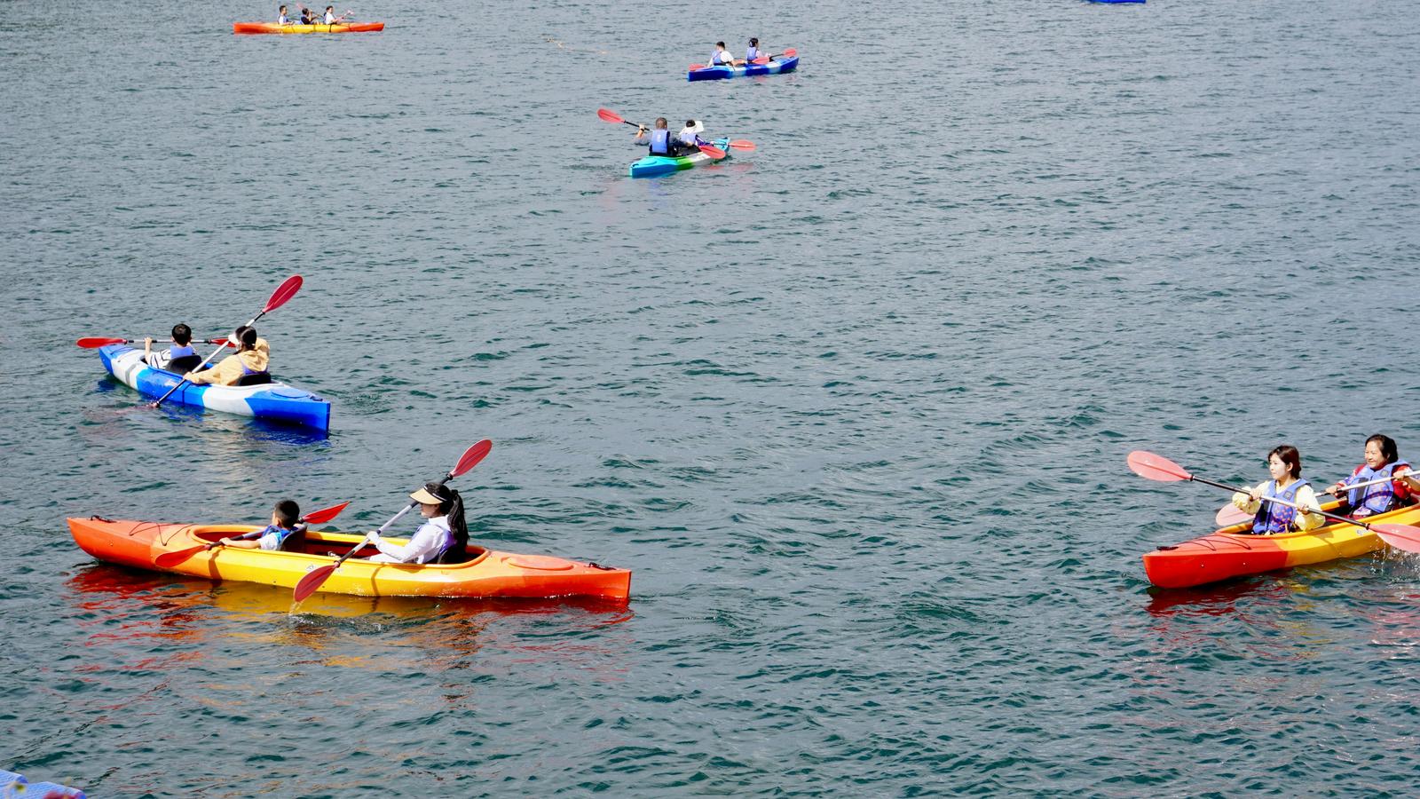 游客杨先生刚体验完皮划艇项目,他表示:“虽然之前也划过船,但这里的皮划艇速度更快,对技巧要求也更高。必须把握好力量与方向,才能让船快速前进。”他认为,这类水上活动参与门槛不高,体验感却非常强,无论大人还是孩子都能乐在其中。
