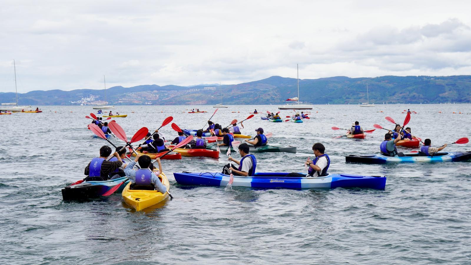 同样来体验皮划艇的游客施锐则对“协作”一词印象深刻。“双人皮划艇非常考验团队配合,一起在水上自由滑行的过程既刺激又愉快。”他还补充道,抚仙湖的水质清澈、风景优美,原本只是计划去咖啡厅小坐,却被水上项目吸引,临时决定“先划船,再喝咖啡”。