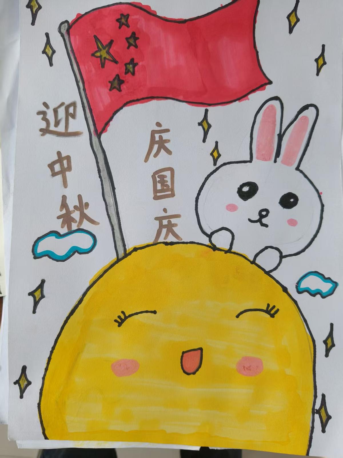 实践创作环节,一至三年级的小画家们铺开画纸,笔下有迎风飘扬的国旗,有挂着灯笼的庭院,还有一家人围坐分食月饼的温馨场景,色彩斑斓中满是童真祝福。四至六年级的同学们在手抄报里既有“国庆由来”“中秋诗词”的知识卡片,也有“我爱我的祖国”的深情告白,文字与插画交织,尽显对双节的理解与热爱。