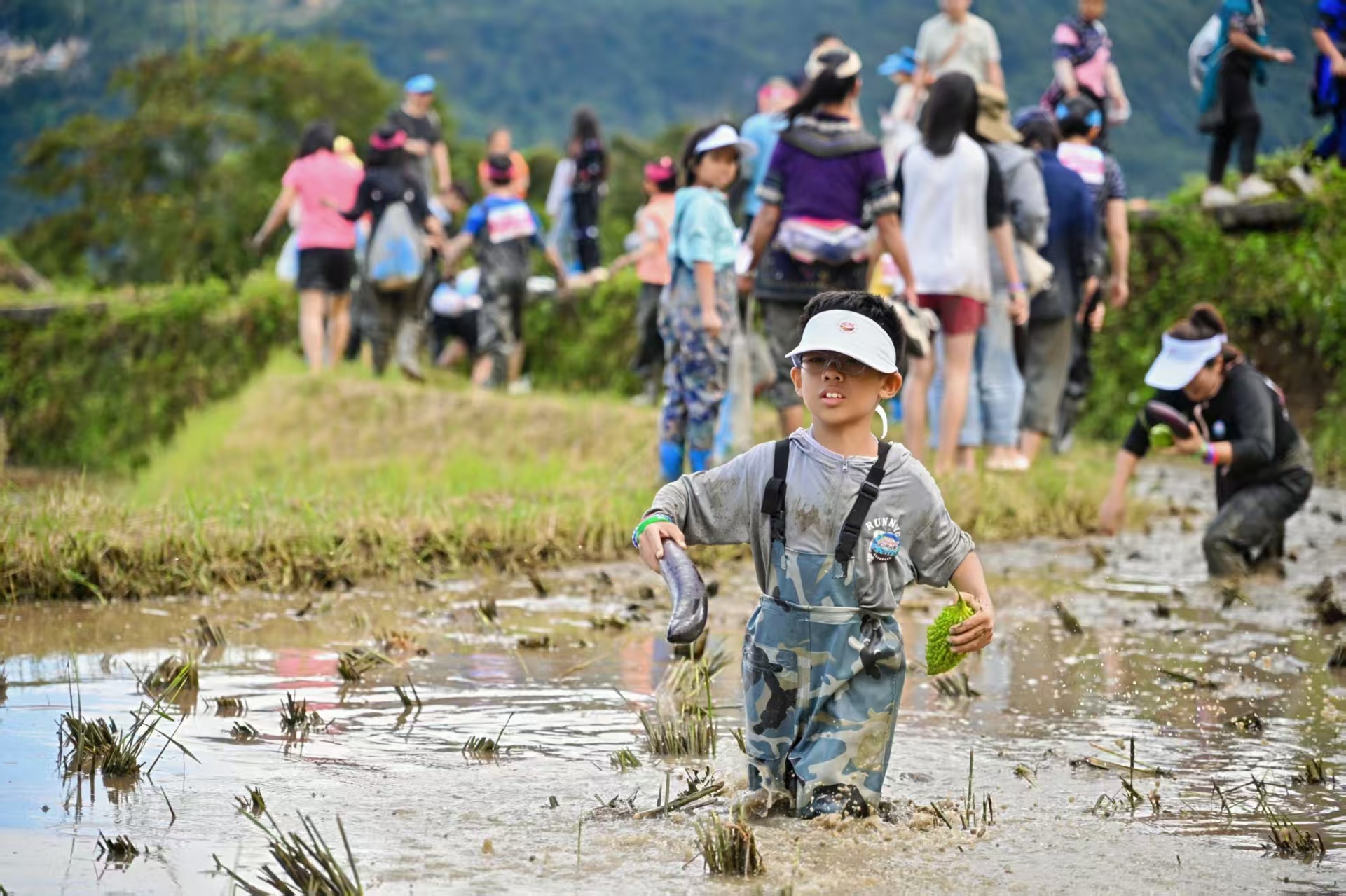 晨光初照,千年哈尼梯田如镶嵌在哀牢山间的明镜,云影下一场别开生面的体育嘉年华拉开帷幕。五个源自农耕生活的项目,让参与者在汗水中体验哈尼族千年的生产智慧。泥地寻宝唤醒收获喜悦,梯田拔河凝聚团结力量,蔬菜接力传递协作精神,稻田捕鱼考验敏捷身手,泥潭对推是平衡的智慧。一位家长坦言:“带孩子来参加泥泞挑战赛,不仅锻炼了身体,还学会了团队协作,更深刻理解了‘谁知盘中餐,粒粒皆辛苦’的含义。”