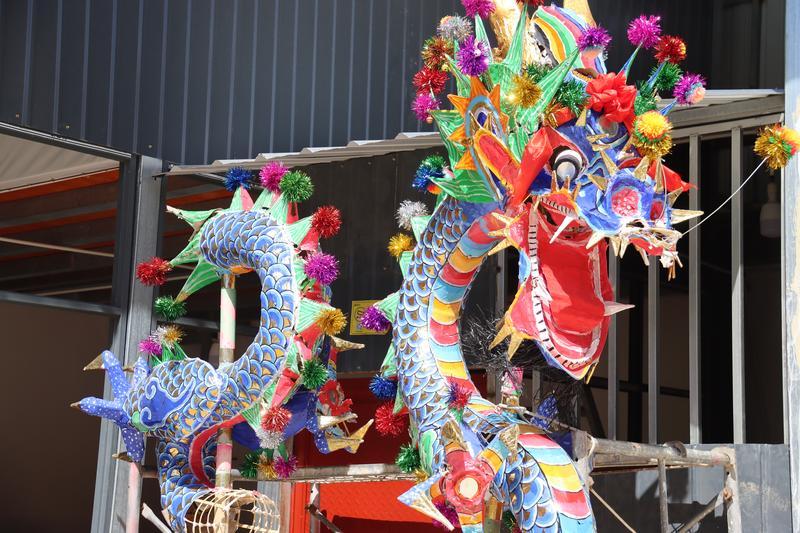纸扎展区一条身形矫健的“龙”让人叹为观止,它以竹为骨,编织出矫健的龙形骨架,再施以精细雕刻与绚烂彩绘,龙鳞在太阳底下波光粼粼,仿佛下一刻就要腾空而起,栩栩如生。00后传承人孙浩分享道:“我们家从爷爷辈就开始做扎龙,我从小就爱看,特别感兴趣,慢慢就学会了,希望我们年轻一辈也能把我们的传统艺术流传下去。”
