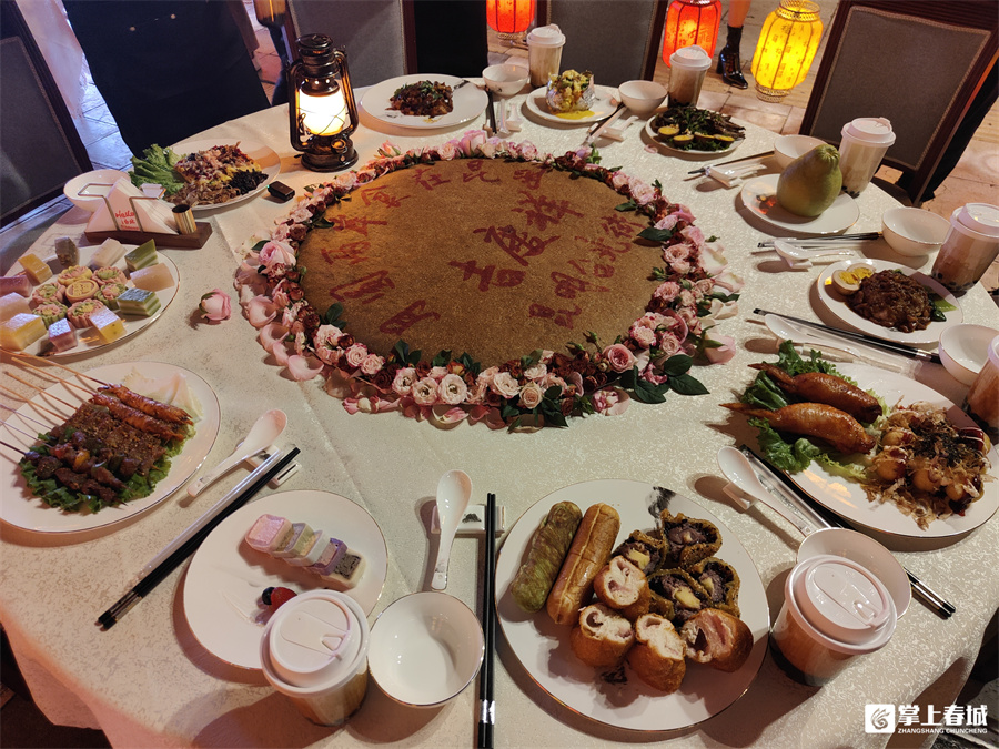 随着“两岸共明月 · 圆桌家宴”篇章的开启,活动进入高潮。各位摊主纷纷端上自己的拿手小吃,从台湾特色小吃到云南特色月饼,琳琅满目地摆放在三张大圆桌上,构成了一席丰盛而别具意义的“团圆家宴”。陈启展介绍,这次是几十位台商青年首次在昆明共度中秋,所以他们举办了一场特别的中秋家宴。各位台商都带来了各自的拿手美食,大家既兴奋能在昆明过节,也高兴能通过地道台湾小吃展现家乡风味。
