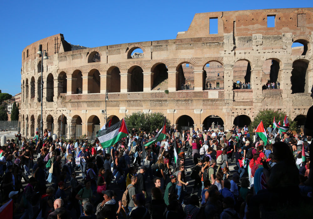 据意大利媒体报道,大约40名意大利公民遭以方扣押。自1日晚间以来,罗马、米兰、那不勒斯、都灵、热那亚等地举行游行活动。罗马警方说,约25万人参加了持续至第4天的抗议游行。大批抗议者当天手举声援巴勒斯坦的标语和旗帜,从罗马斗兽场前走过。