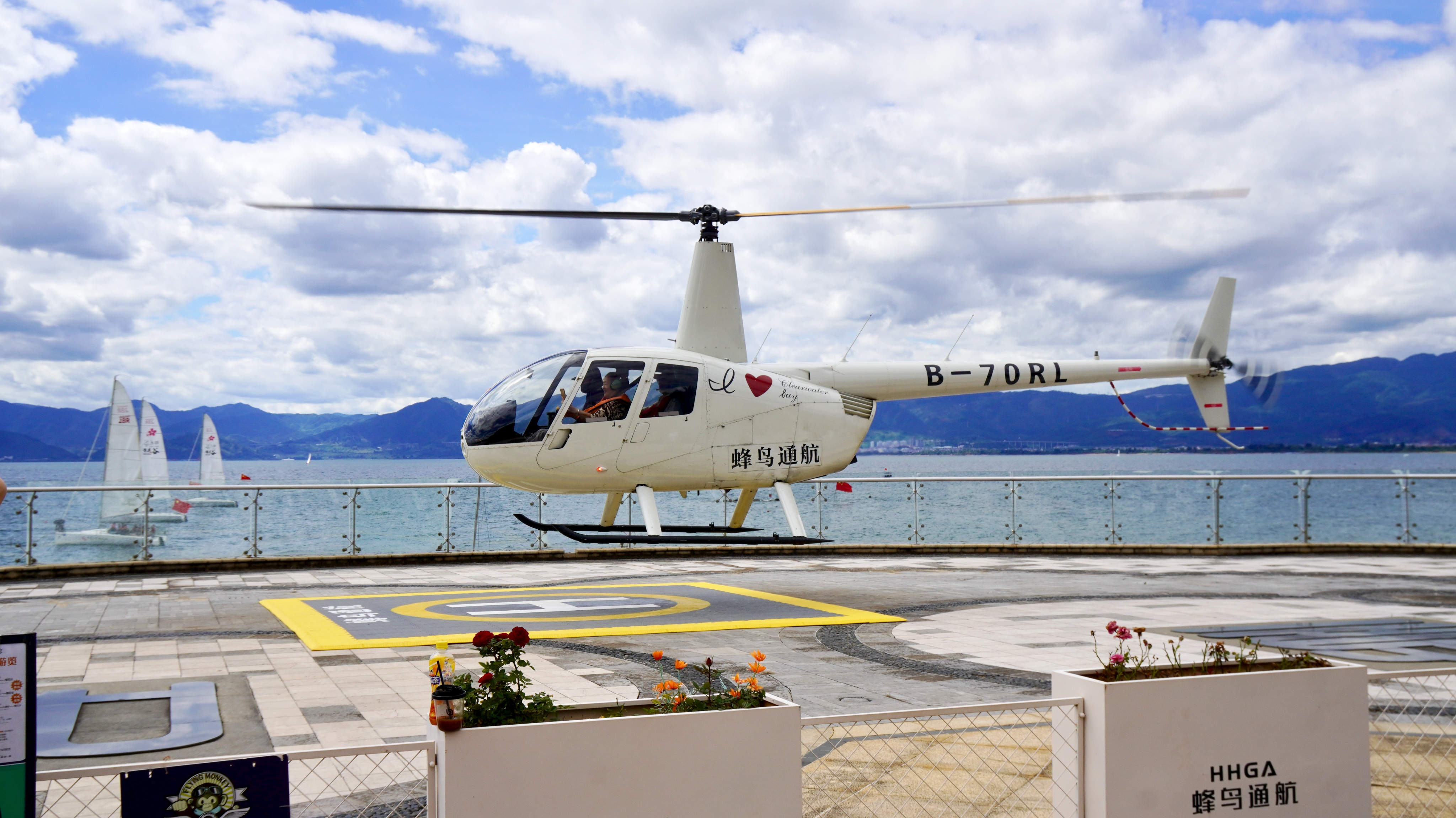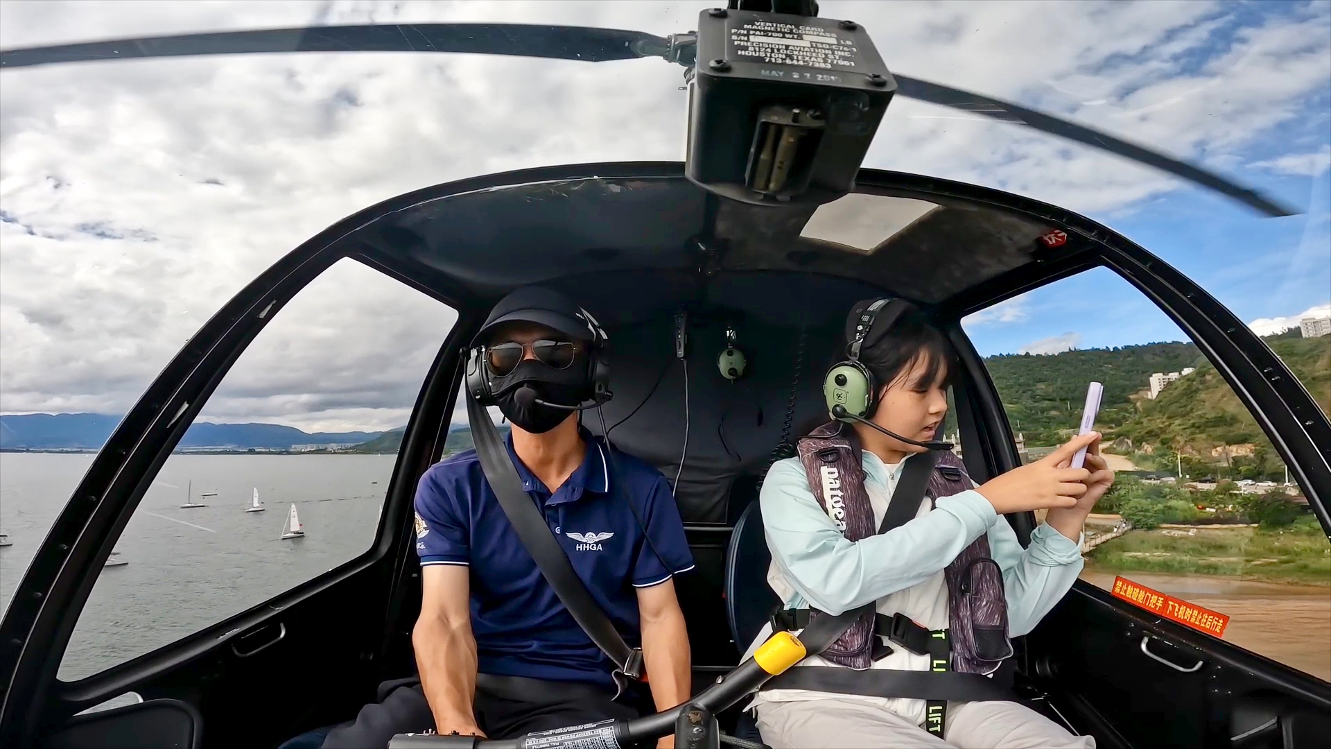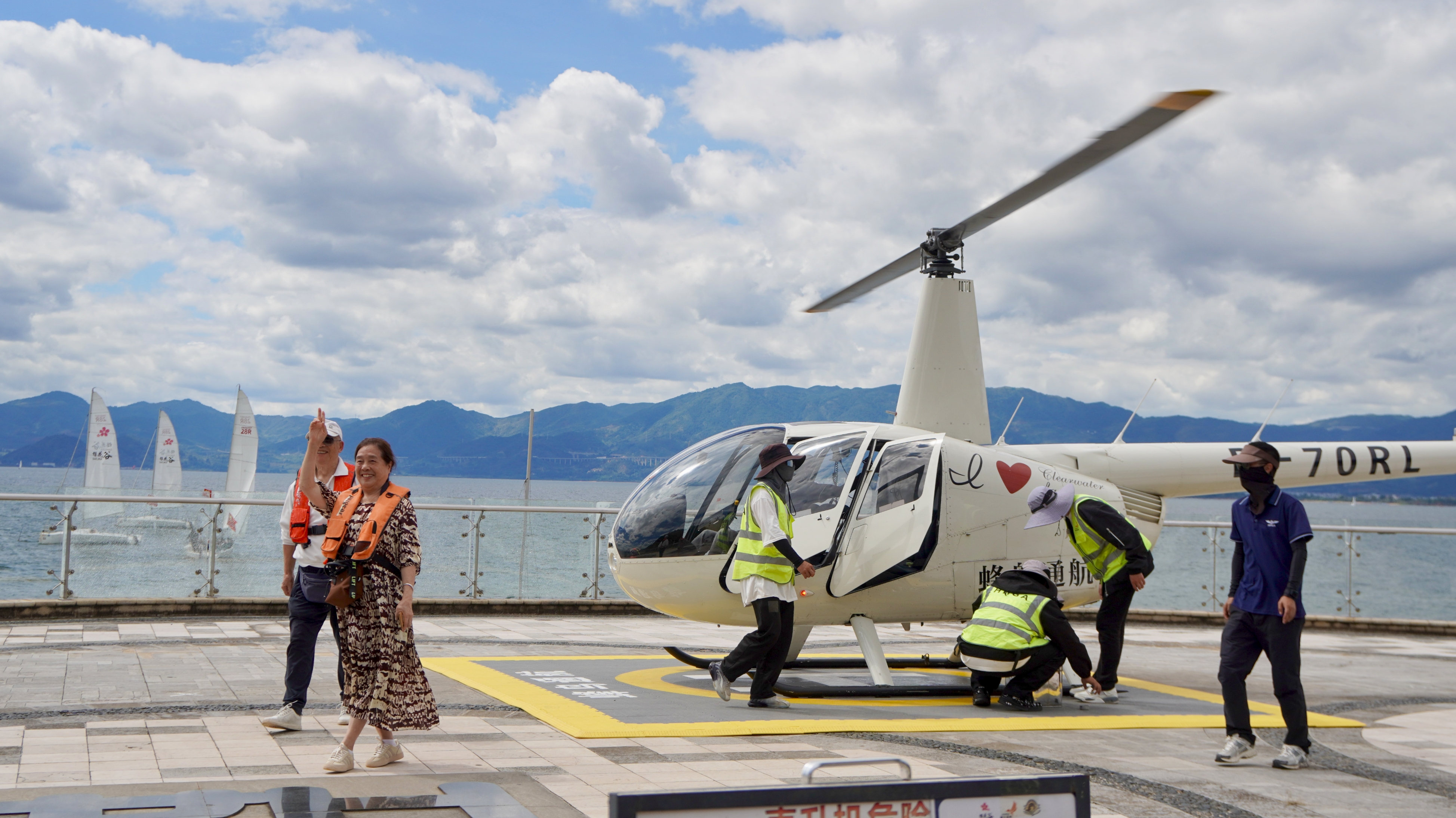 来自贵州的游客刘芯妤表示,乘坐直升机的体验令她震撼,高空俯瞰抚仙湖美景一览无余,刺激感十足。