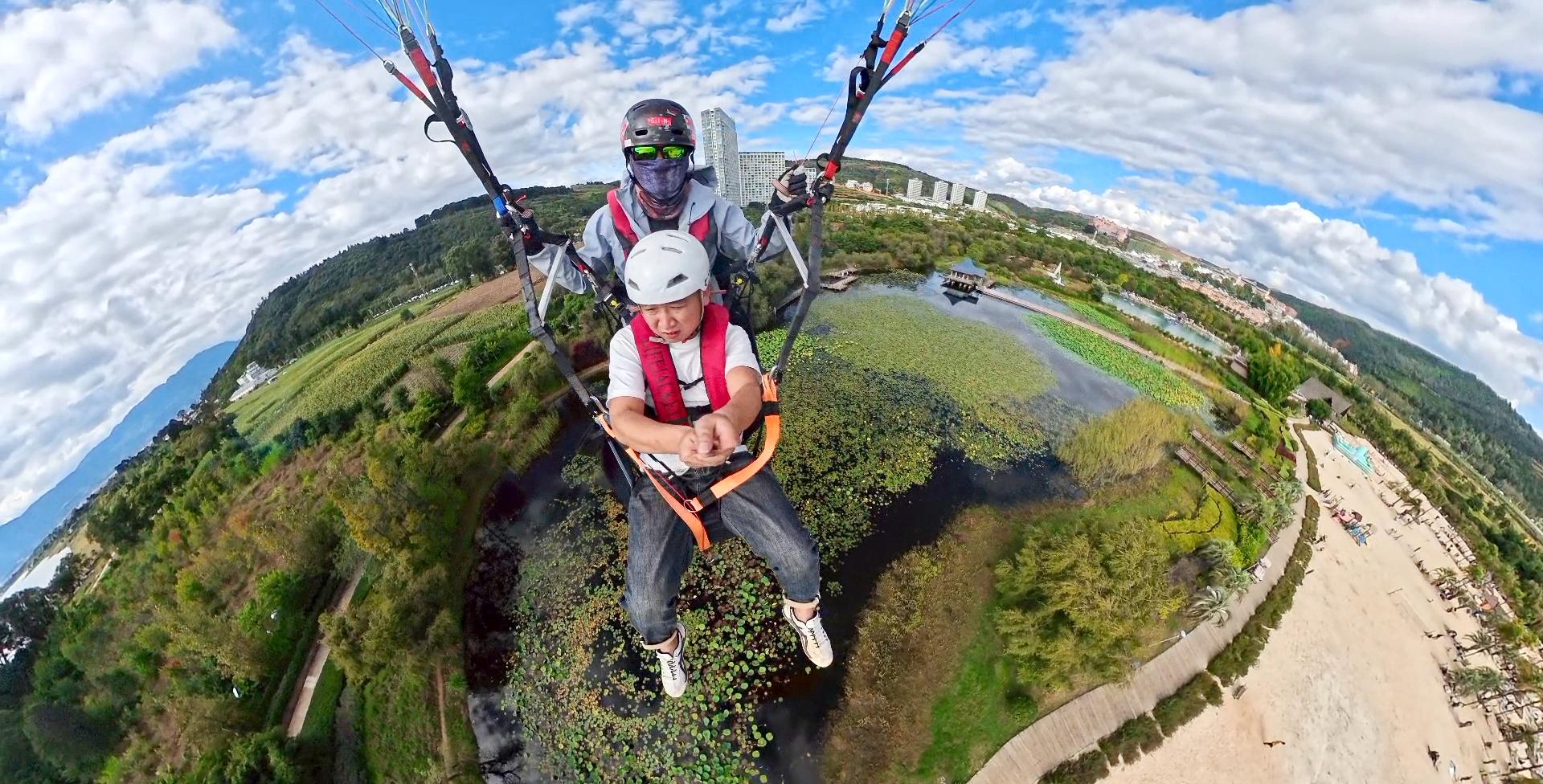 来自贵州的姚宇则是首次尝试滑翔伞,他认为在空中虽有轻微失重感,但整体体验极佳,从空中俯视湖面的感觉非常棒。