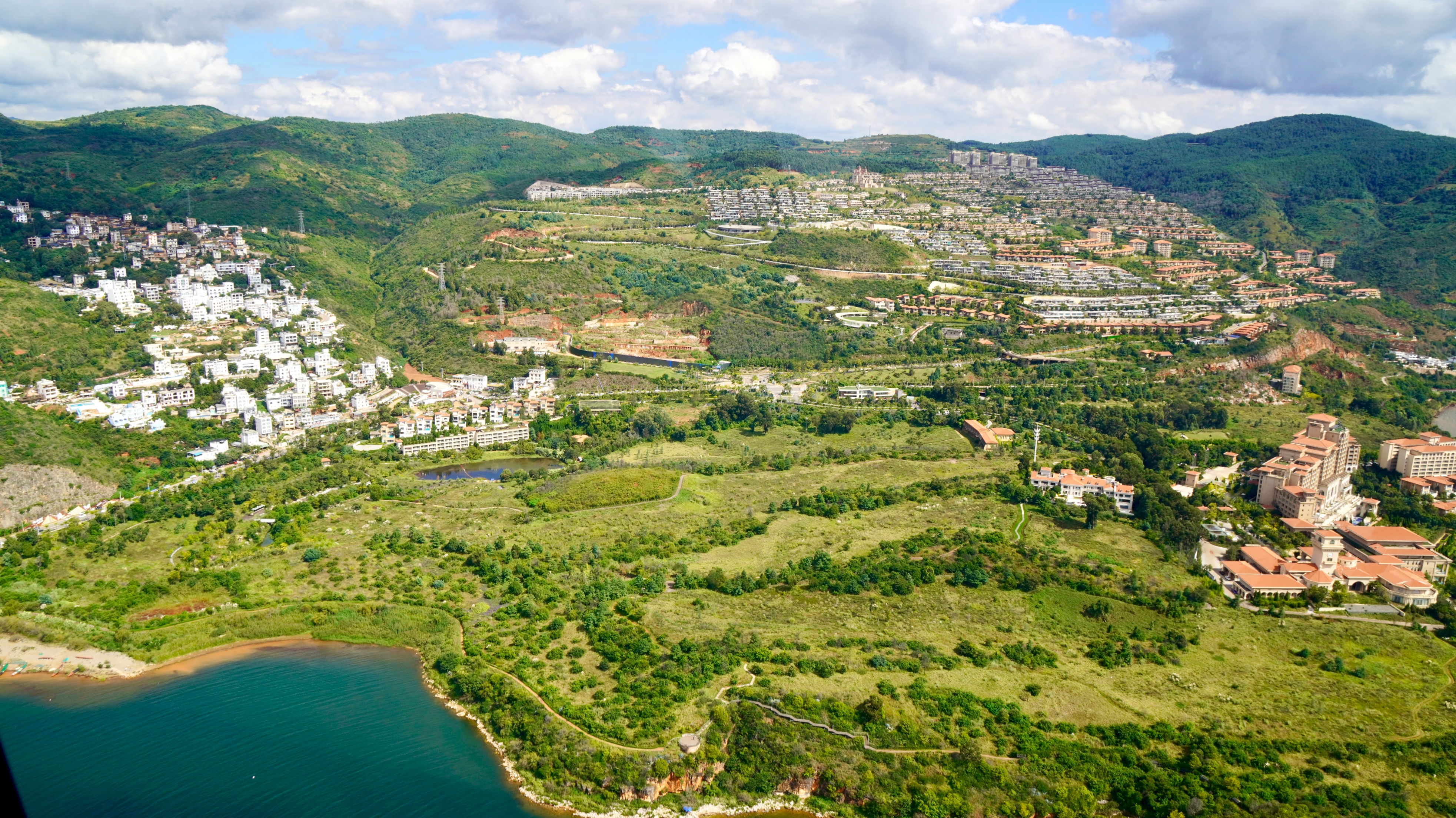在樱花谷直升机飞行体验地的停机坪处,围观游客络绎不绝,大家纷纷举起手机拍照记录。工作人员正高效引导体验者完成安检、登机、系缚安全带等流程,随着旋翼转动的轰鸣声渐强,直升机缓缓升空。高度攀升间,抚仙湖全貌铺展:澄澈湖面如蓝宝石镶嵌山间,日光洒落时波光粼粼,微风拂过泛起层层涟漪;远处山峦连绵起伏,与湖水相映成画,独特景致让体验的游客为之沉醉。
