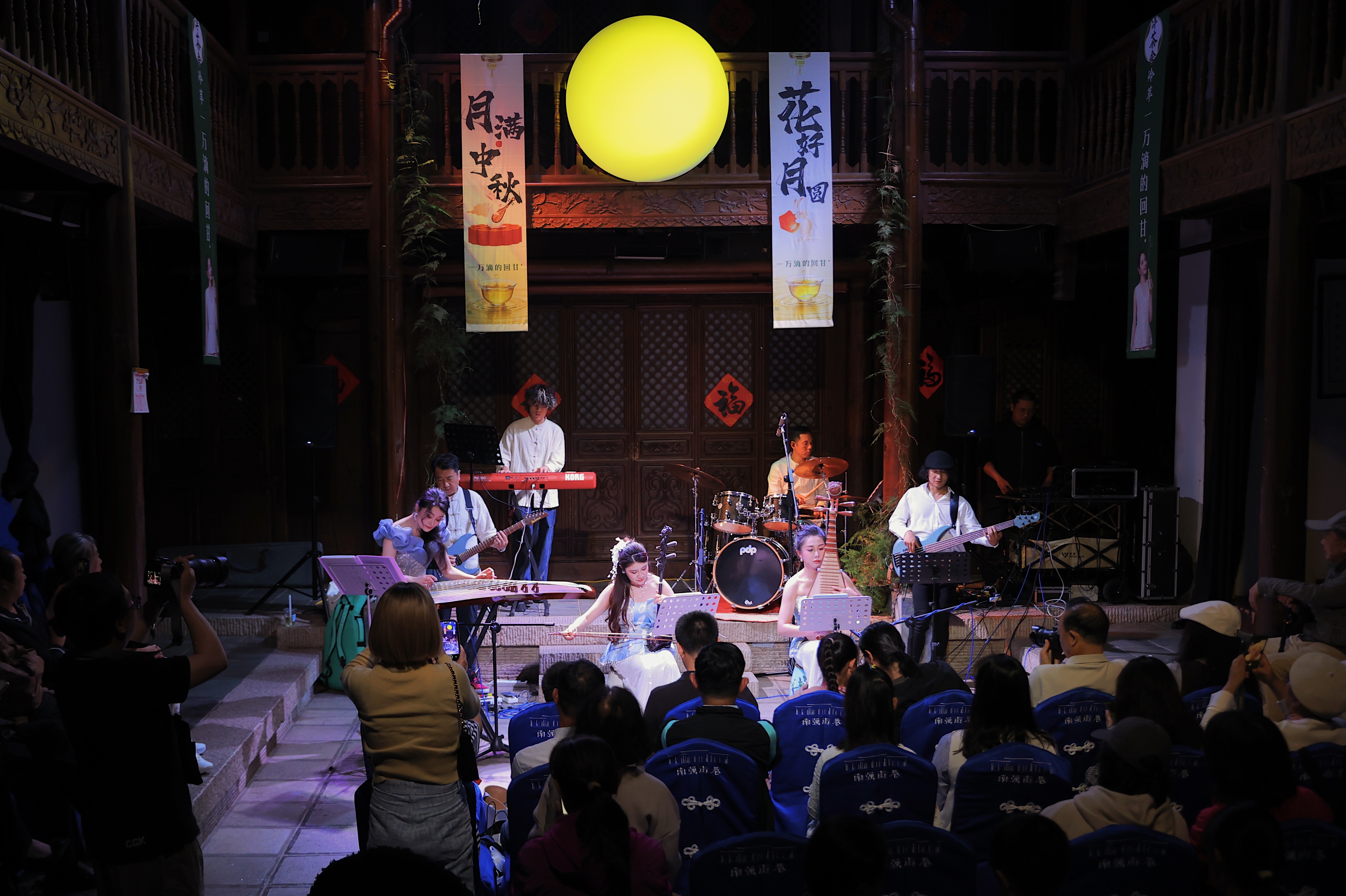 10月6日中秋当日,南强街巷将活动温情推向高潮,一场公益音乐会在八十八号庭院剧场专属启幕。这座嵌入历史街巷的庭院剧场,青砖围合、天井敞亮,月光透过雕花窗棂洒进院落,与舞台灯光交织成暖柔意境。街区特别邀请南强周边居民围坐于剧场天井间,在悠扬的民乐声中共赏圆月、分食月饼,老人的絮语与孩童的笑声伴着旋律在庭院里回荡。而此时的金碧公园,也以静谧的夜景与零星的中秋闲谈,成为市民就近赏月、感受团圆的日常场景。从清末民初的商贸旺地(南强街巷),到承载日常烟火的口袋公园(金碧公园),两座空间以不同的姿态诠释着昆明的城市记忆。此次双节活动通过国风主题与特色空间的融合,既让历史地标“活”了起来,也让口袋公园“热”了起来,更让传统文化以可感、可触的方式走进市民生活,成为2025年昆明双节期间“文旅融合、古今对话、日常与仪式共生”的亮眼典范。