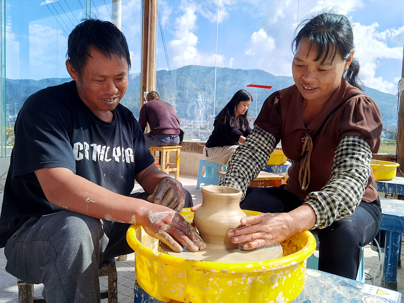 寨子里还念着“蒋大瓮刘大坛”的老话——蒋家的大瓮扎实耐用,刘家的大坛密封性绝佳,老一辈的手艺在器物上代代相传。如今在土陶研习馆里,第五代传人蒋成树会笑着手把手教你拉坯,看你笨手笨脚把泥巴捏成歪扭的模样,还乐呵呵地说着:别急,慢慢来。等亲手做的“时光信物”烧好寄到家,日后捧玩,都能想起那天指尖沾着的陶土香。