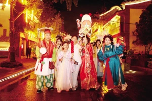 巡游路线上各特色摊位前人头攒动。售卖非遗手工艺品的张老板笑着说:“这几天营业额比平时多了几倍,特别是这些迷你渔灯文创产品,每天都能卖出上百个。”官渡古镇运营方负责人介绍,以往游客来古镇消费主要在餐饮和门票上,现在延伸到汉服租赁、文创购买、摄影服务等领域,夜间占全天消费的60%以上。特别是无人机星空秀和建筑光影秀延长游客停留时间,并带动周边餐饮、住宿、休闲消费显著增长。