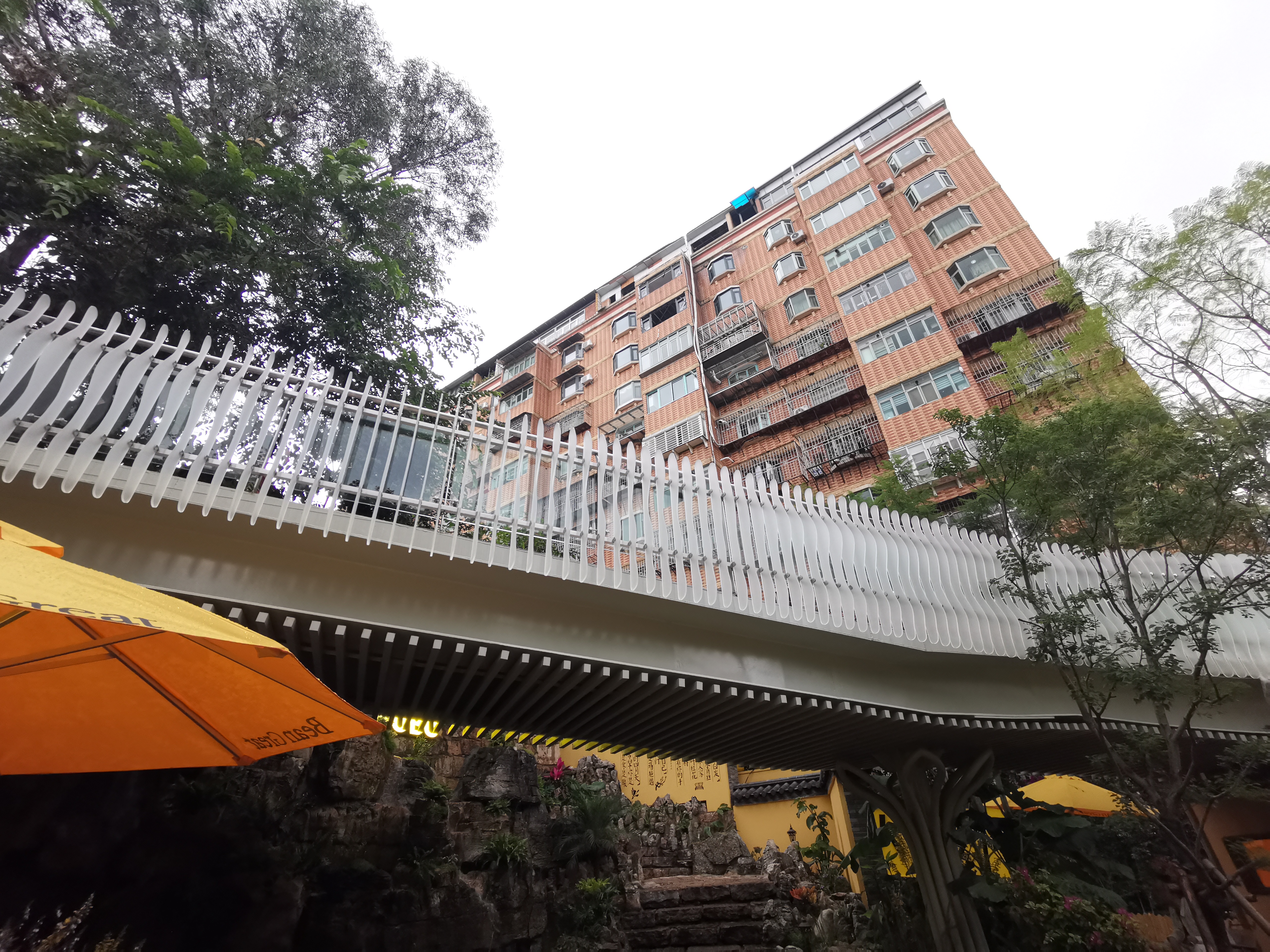 今年5月份,昆明市自然资源和规划局发布《翠湖城市绿道一期建设项目规划设计方案批前公示》,项目包含毓英公园及配套设施架空栈道建设。开屏新闻记者10月8日路过黄公东街时看到,上述规划中的架空栈道主体部分已近完工,还剩部分扶手安装、路面铺装没有完成。