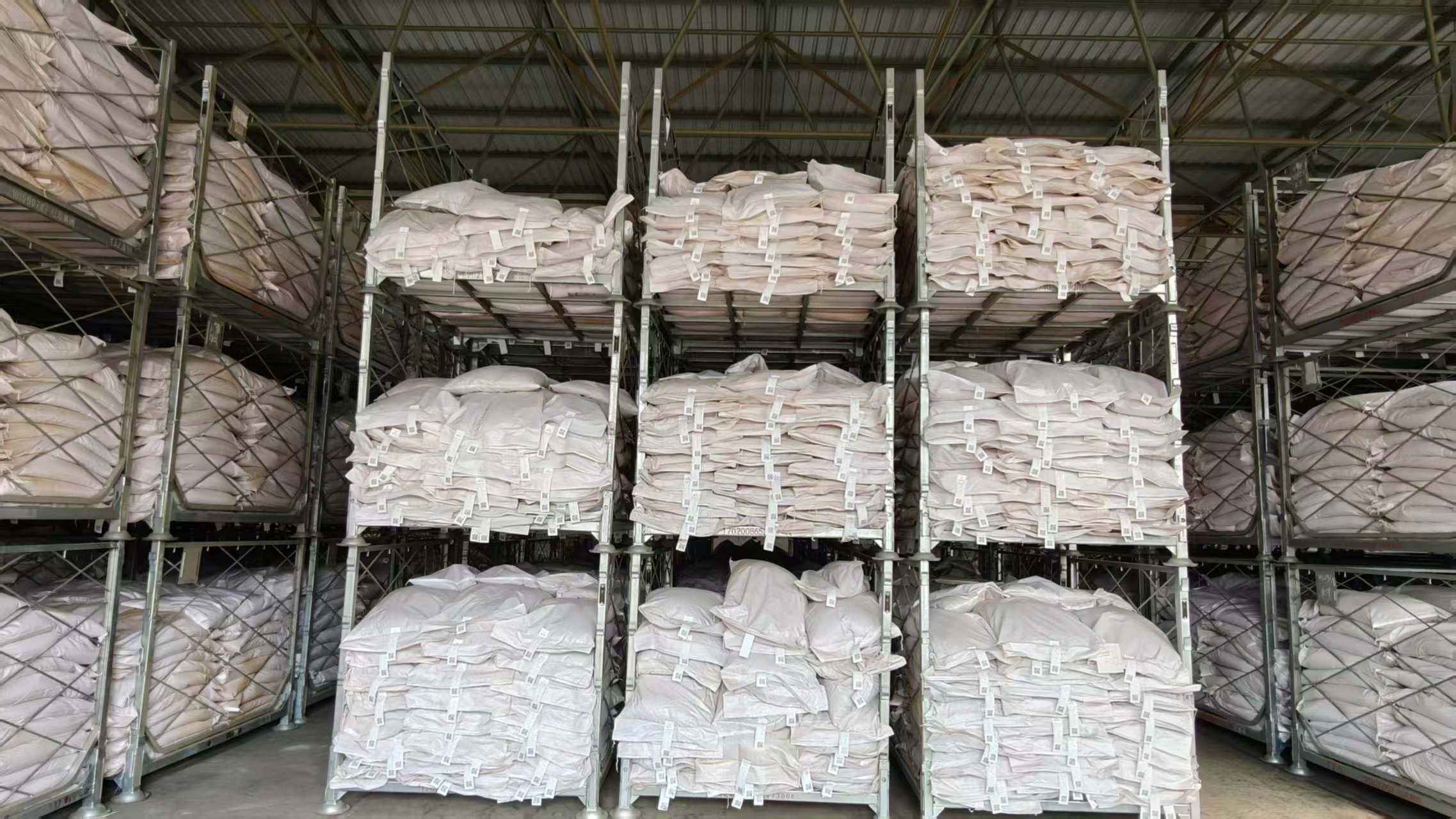 在框栏使用前,很多副产品依赖大量人工逐包逐袋地作业。装卸工有时需要站在2至4米高的堆垛顶部装车和堆码,有时需要使用抓钉逐包钩取搬运。在作业过程中,不仅安全风险高、作业效率低,还极易造成麻包破损,导致物料散落损耗;运输前,还需要逐包翻找扫描标签,费时费力且容易出现数量清点错误的问题。
