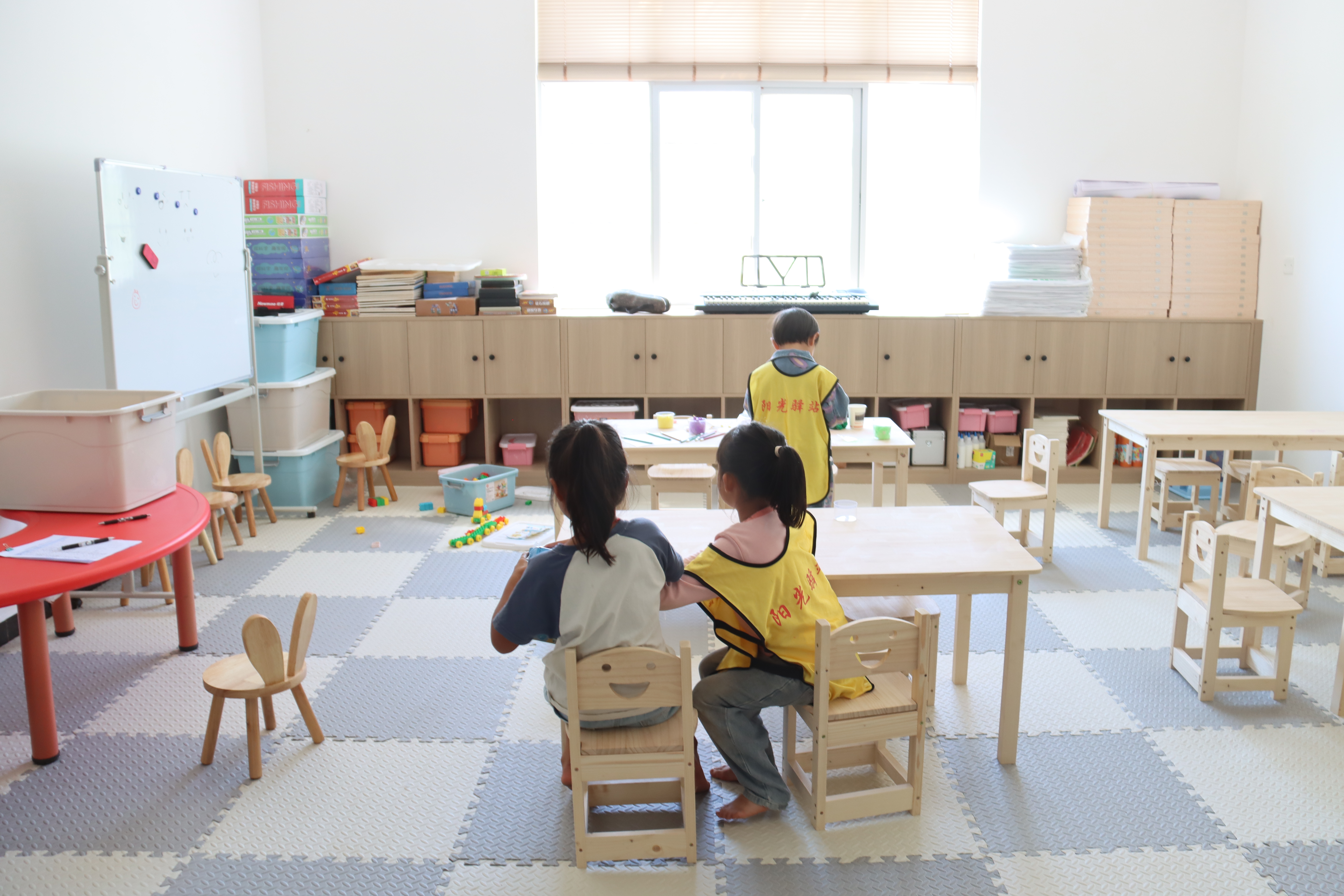 循着孩子们欢快的笑声拾级而上,二楼儿童活动区瞬间将人带入一个色彩斑斓的童话世界。活动室里,“桌上冰球”“桌上足球”对抗赛正激烈进行,小选手们全神贯注,隔壁的拼图比赛火热开场,各小分队你追我赶。图书室里,绘本故事吸引着几个安静的孩子,他们沉浸在想象的海洋里。