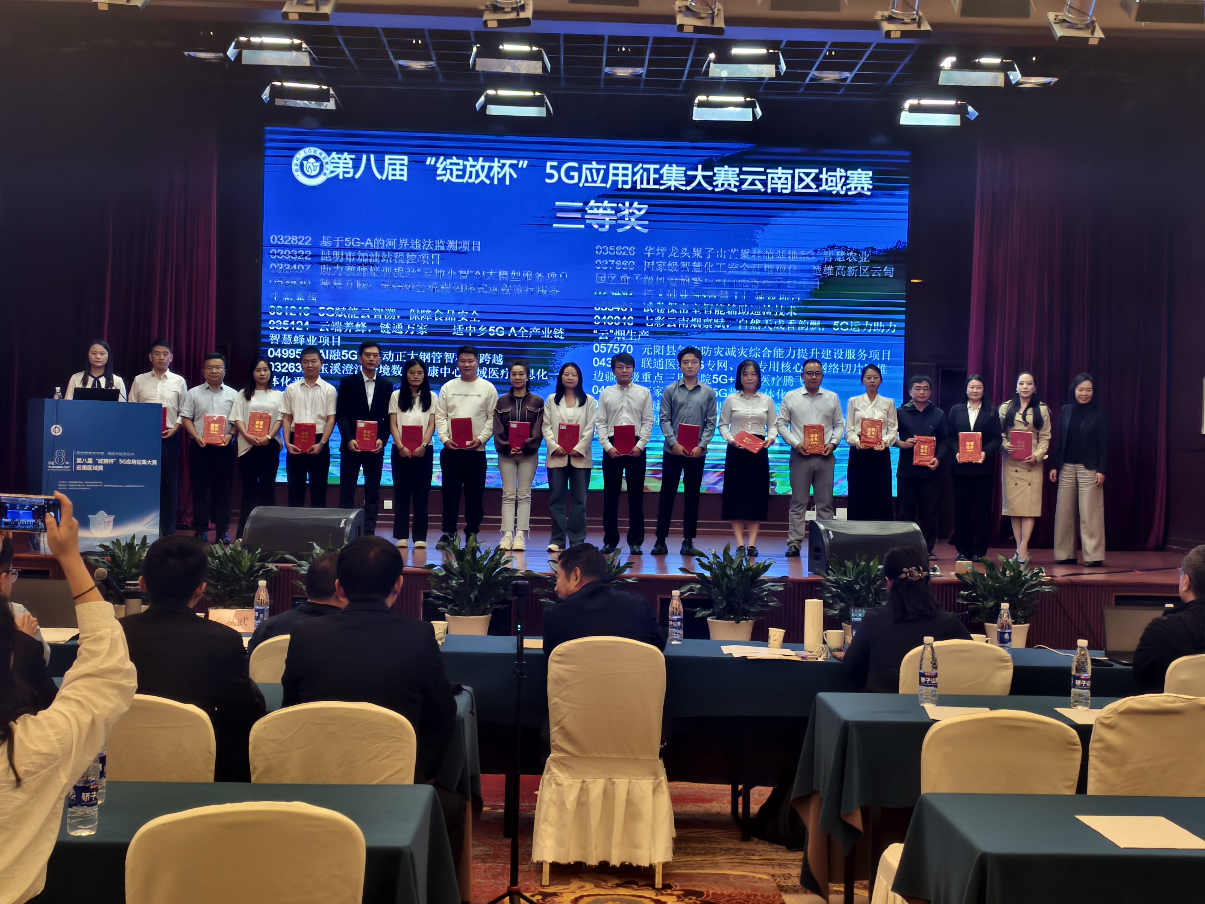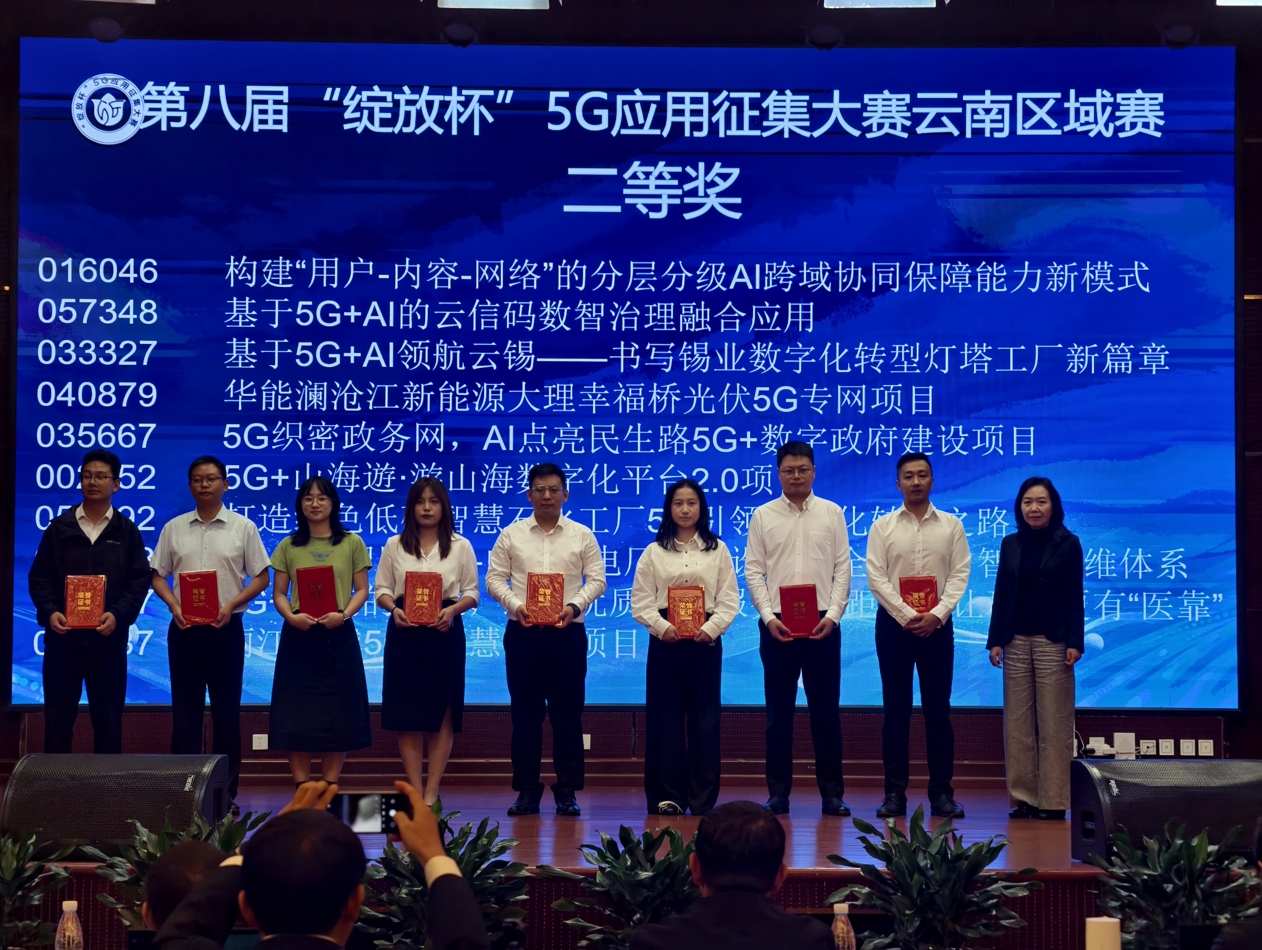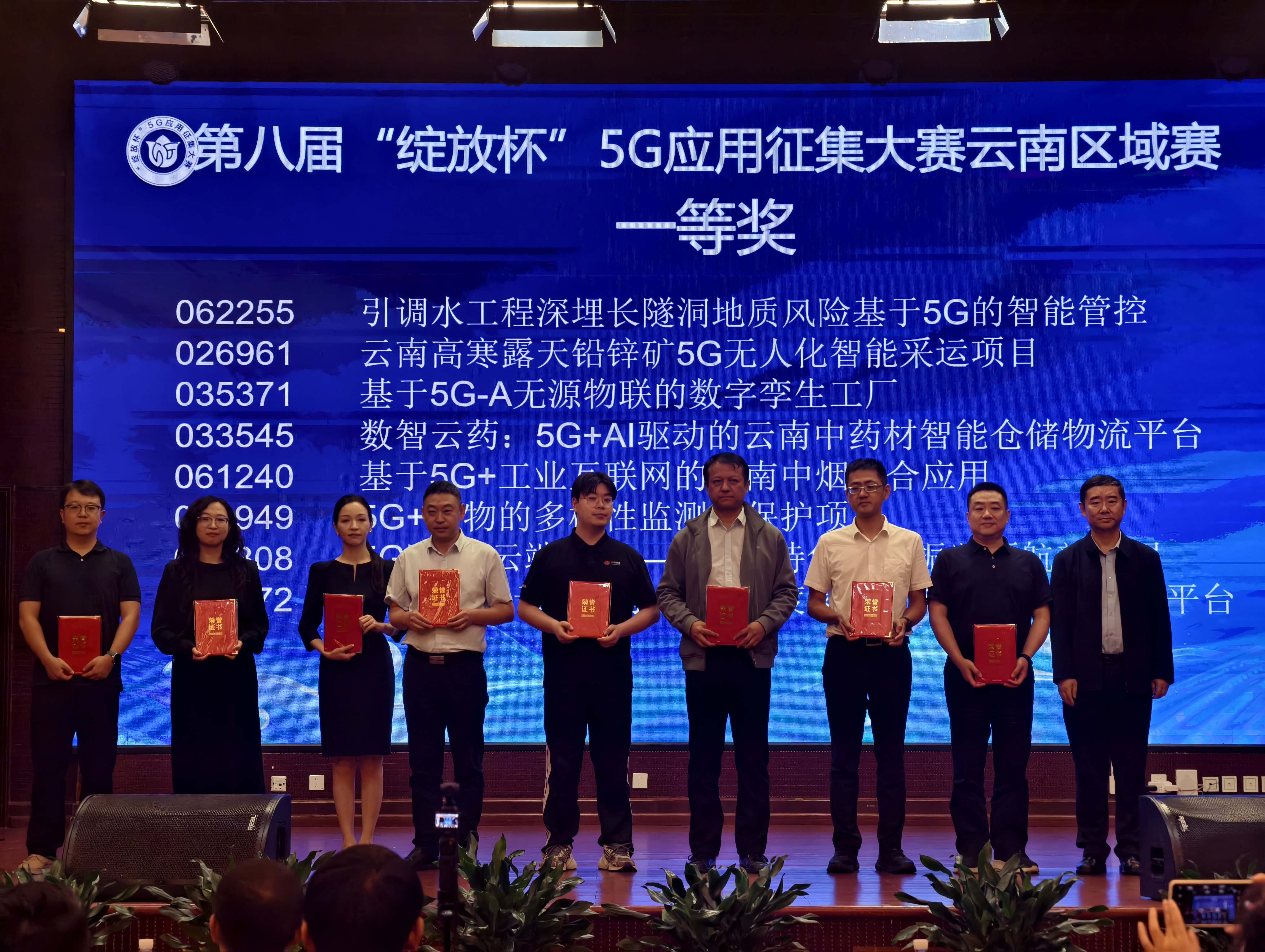 最后,“引调水工程深埋长隧洞地质风险基于5G的智能管控”“云南高寒露天铅锌矿5G无人化智能采运项目”“基于5G-A无源物联的数字孪生工厂”“数智云药:5G+AI驱动的云南中药材智能仓储物流平台”“基于5G+工业互联网的云南中烟融合应用”“5G赋能·云端咖啡——高原特色产业振兴领航新发展”“智链茶乡·云融万象-景洪大渡岗农文旅数智融合振兴平台”共7个项目脱颖而出,获得一等奖。