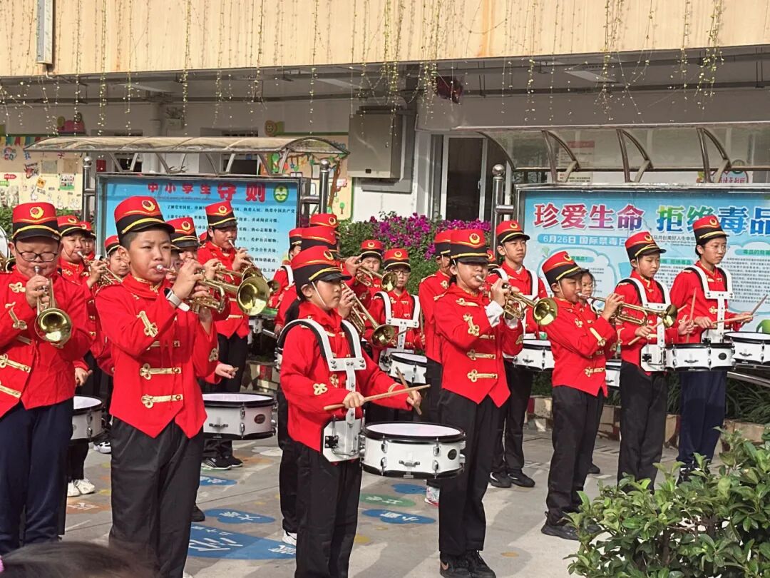 活动在庄严的“三级报告”中开启。各中队依次向大队报告人数,现场应答规范有序;随后,鼓号队奏《出旗曲》,旗手高举队旗入场,全场齐唱《中国少年先锋队队歌》,仪式感在一呼一应之间被点亮。