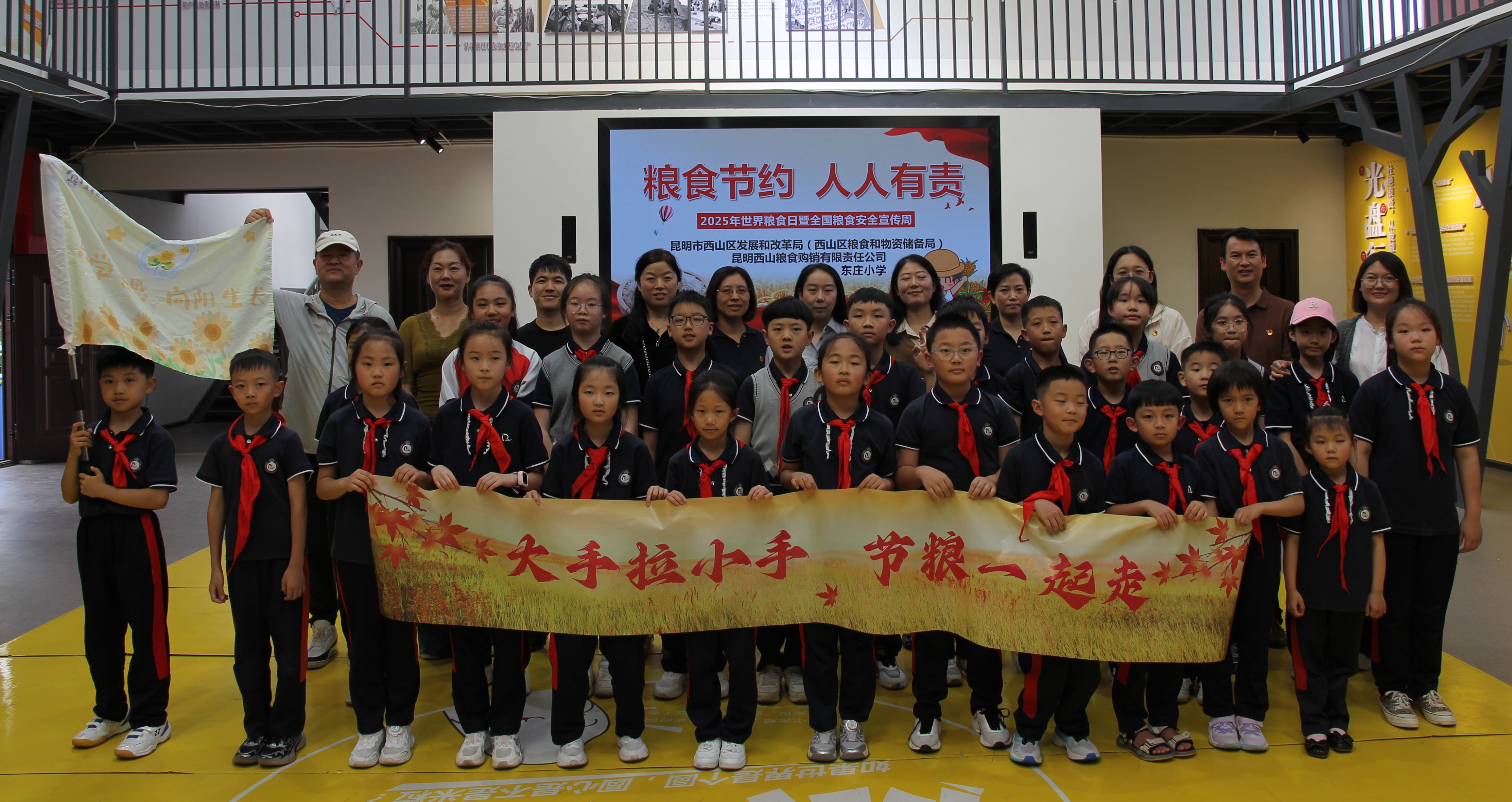 在世界粮食日来临之际,盘龙区东庄小学二(1)向阳花小队与区级优秀雏鹰小队——五(2)智慧小蜜蜂小队,共同走进西山区国企党建实训基地暨粮食安全教育基地,开展“探秘大国粮仓 传承节约美德”主题实践活动。党员教师与家长共同参与,以“红领巾手拉手”促进跨年级交流。
