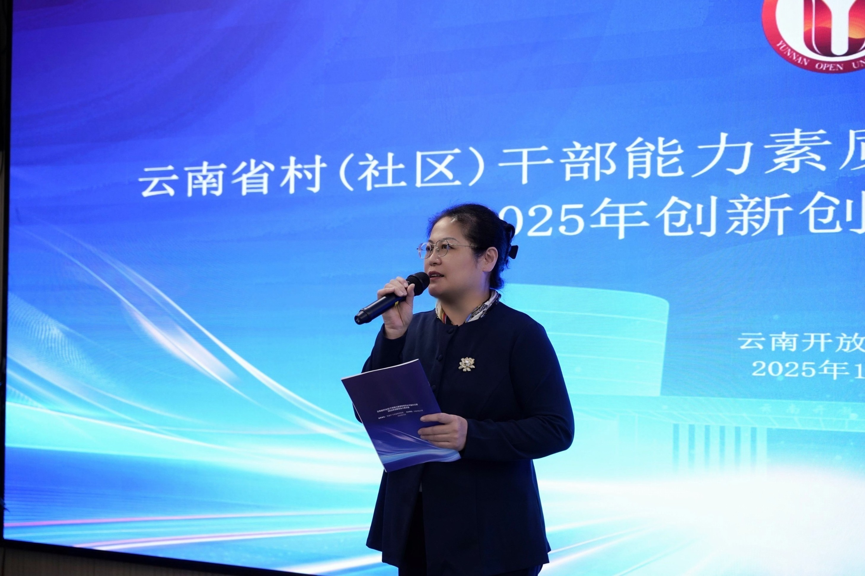 云南开放大学党委委员、副校长杨丽宏为获奖学员颁奖,她说:“希望各位获奖学员以本次大赛为新起点,进一步把项目做深做实、做精做优,让创新成果在乡村振兴的广阔田野上开花结果,带动更多群众增收致富,为云南乡村全面振兴贡献更大力量。”