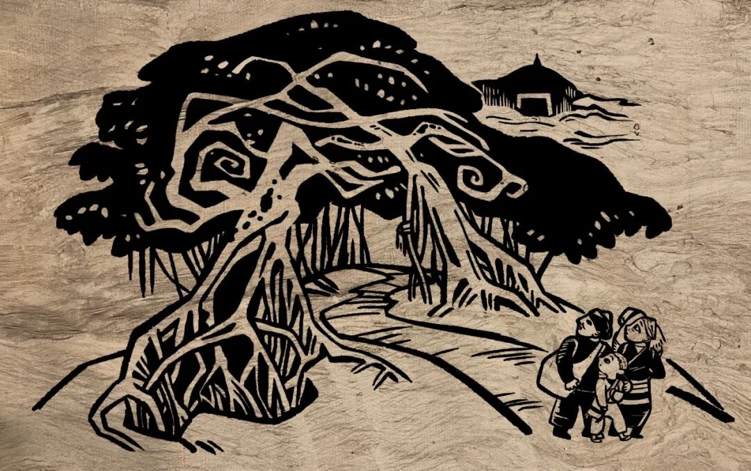 布朗篇“我把太阳装进盒子里”则着眼于年轻一代的创新实践。插画师刘莹根据真实故事创作,讲述一位布朗族青年返乡推广太阳能的经历。画作细腻刻画了主人翁阿云在火塘边成长、外出求学后回归家乡,将太阳能技术引入传统村寨的过程。他通过小小的太阳能设备,把“太阳装进盒子”,不仅照亮了夜晚,也为村寨带来了对可再生能源的全新理解,展现出传统与现代能源方式的有机结合。