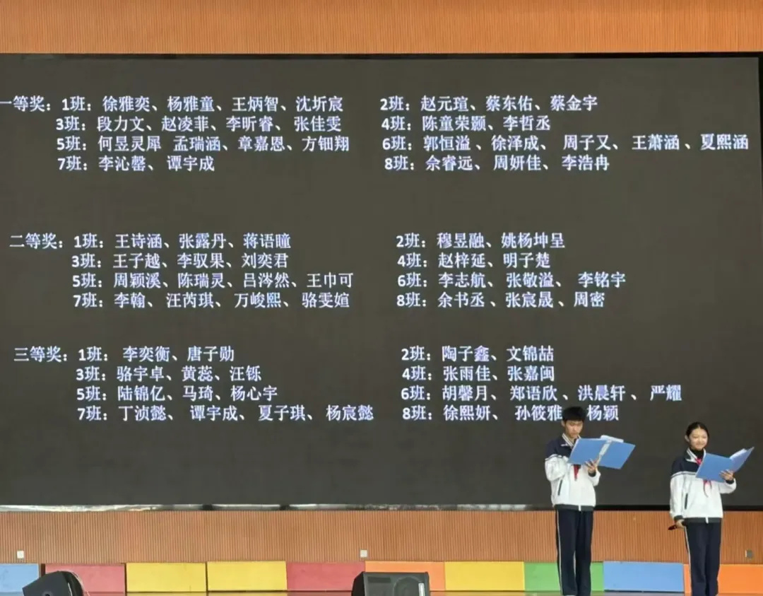 随后的颁奖仪式将活动推向高潮。大屏幕上,获奖名单缓缓滚动。一等奖、二等奖、三等奖的荣誉,属于从1班到8班的每一位探索者。这份荣誉,记录了他们在历史长河中的深耕与创造。